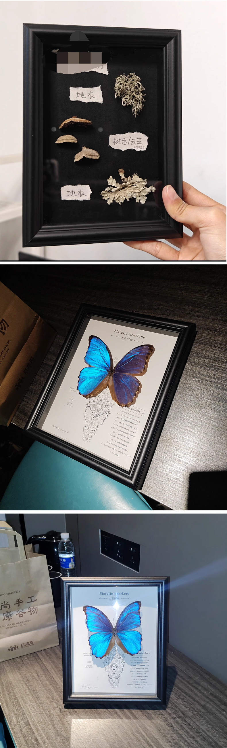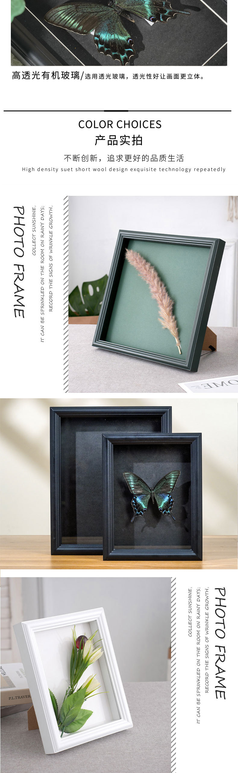 중공 2cm 나비 표본 사진 프레임 DIY 수제 기념 그림 프레임 말린 꽃 표본 유리 테이블 종이 프레임