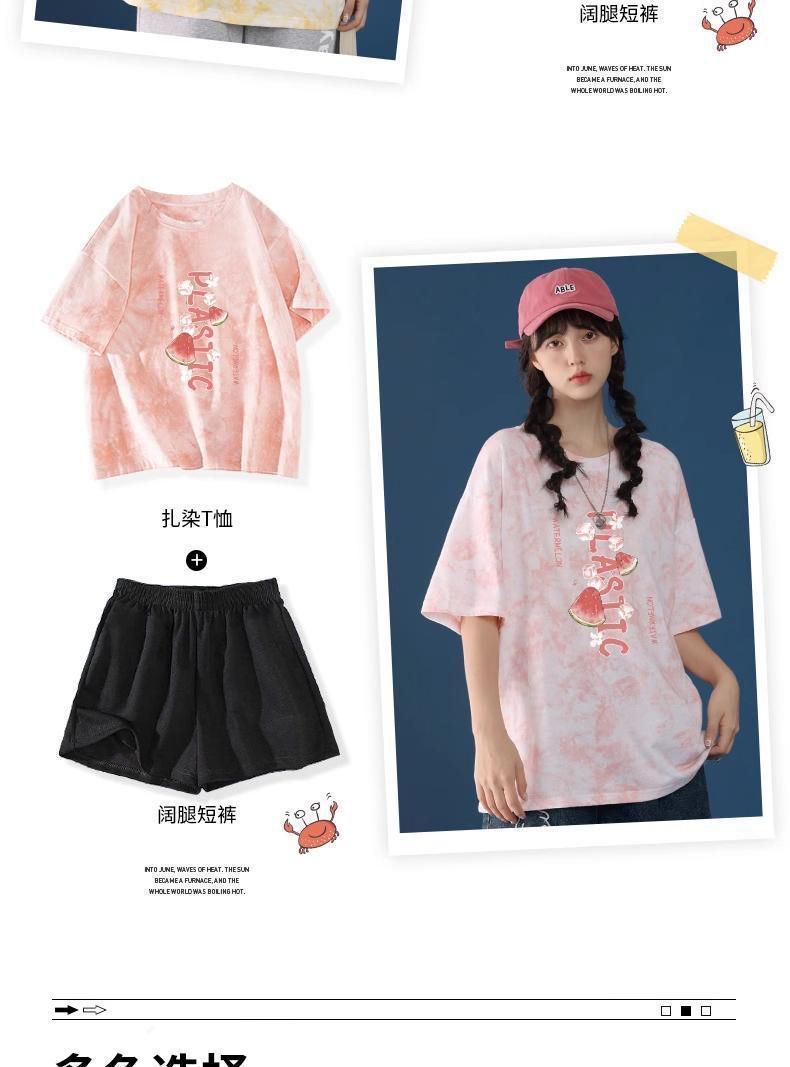 여름 새로운 넥타이-염색 반팔 잠옷 여성의 얇은 만화 달콤한 두 조각 세트 학생 홈 옷을 착용 할 수 있습니다스토어 가기