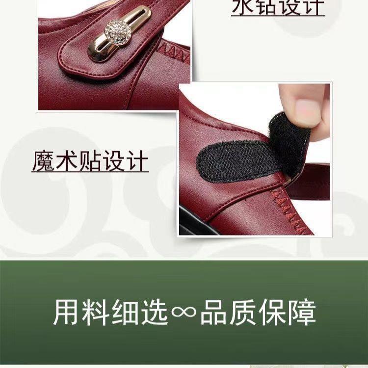 하이 퀄리티 진짜 부드러운 가죽 부드러운 바닥 어머니 작은 가죽 신발 2022 년 봄과 가을 새로운 부드러운 바닥 미끄럼 방지 쐐기 뒤꿈치 중년 및 노인 단층 신발