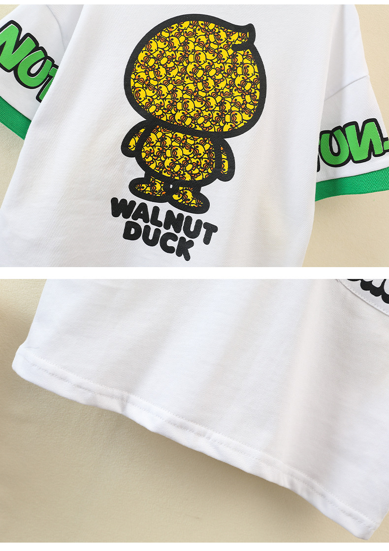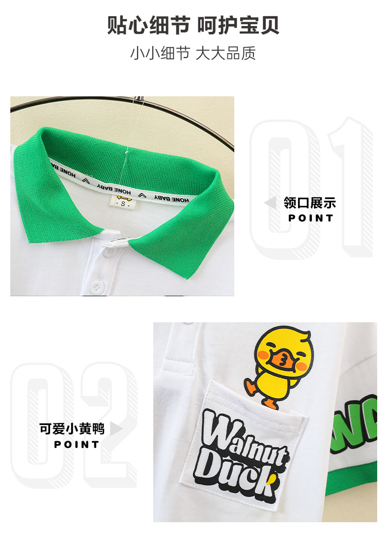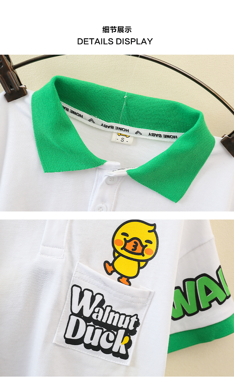 남자들의 여름 반팔 폴로 셔츠 세트 2024 새로운 외국식 어린이 노란 오리 외국식 아기 여름 소년스토어 가기