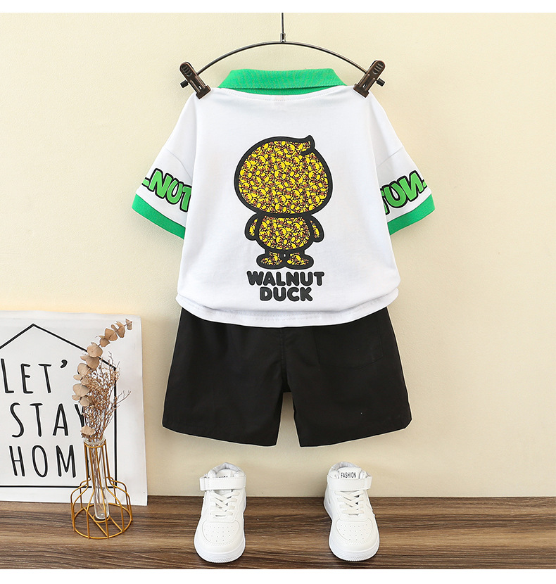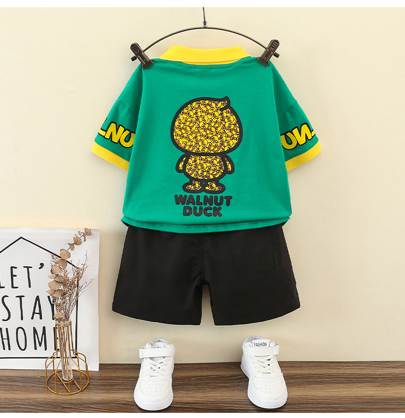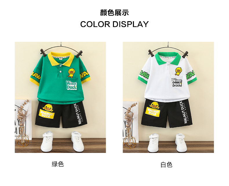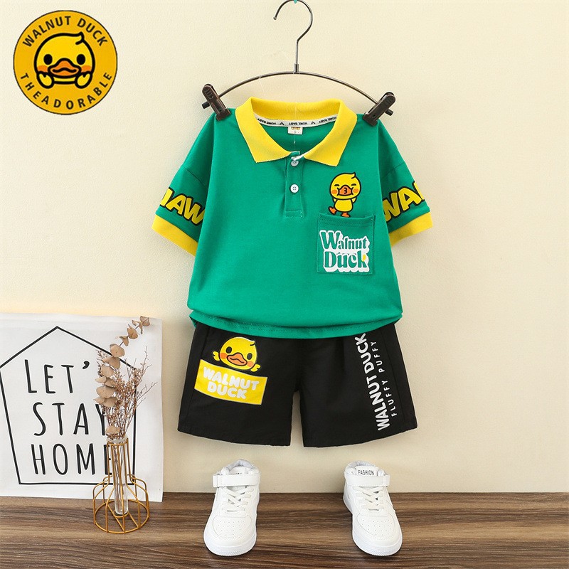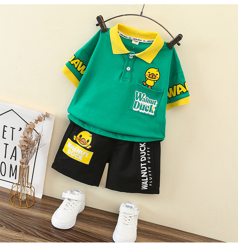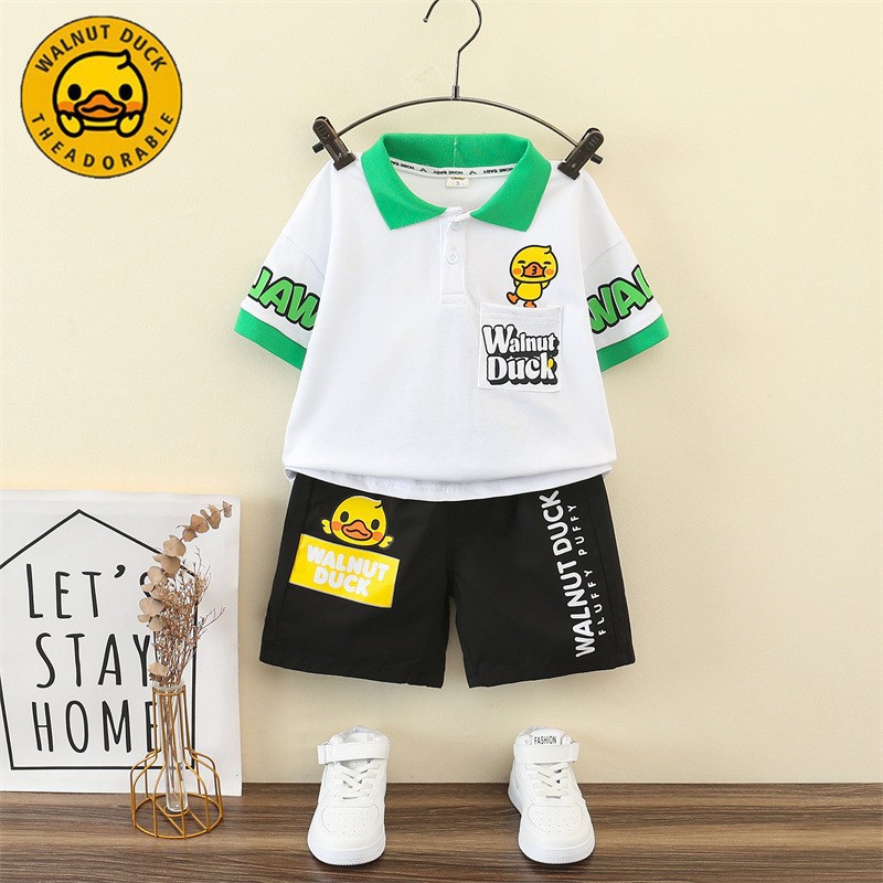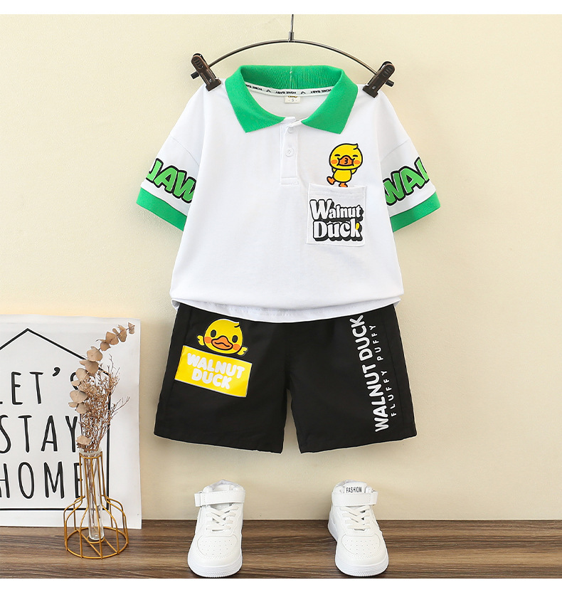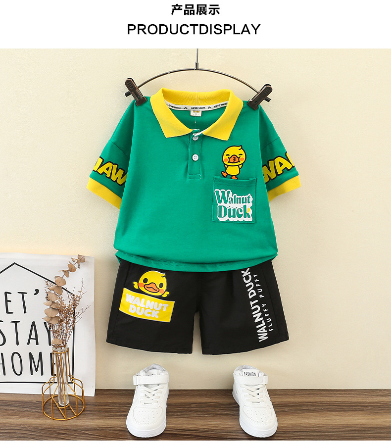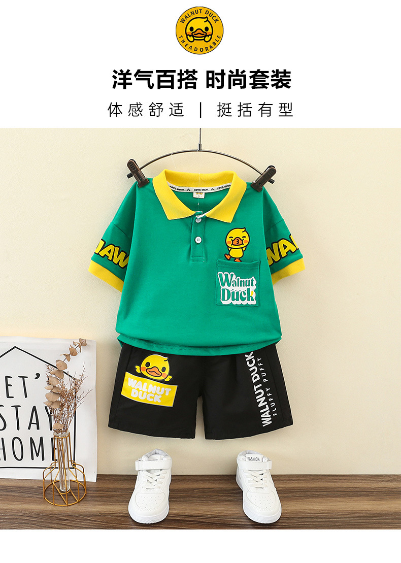 남자들의 여름 반팔 폴로 셔츠 세트 2024 새로운 외국식 어린이 노란 오리 외국식 아기 여름 소년