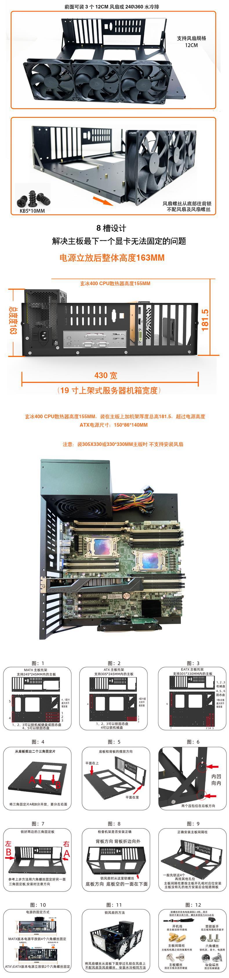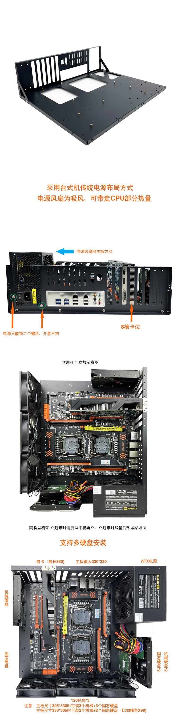 Xinieda 오픈 섀시 X79 X99 듀얼 채널 EATX 마더보드 브래킷은 수직 및 수평으로 360 수냉 랙을 지원합니다.