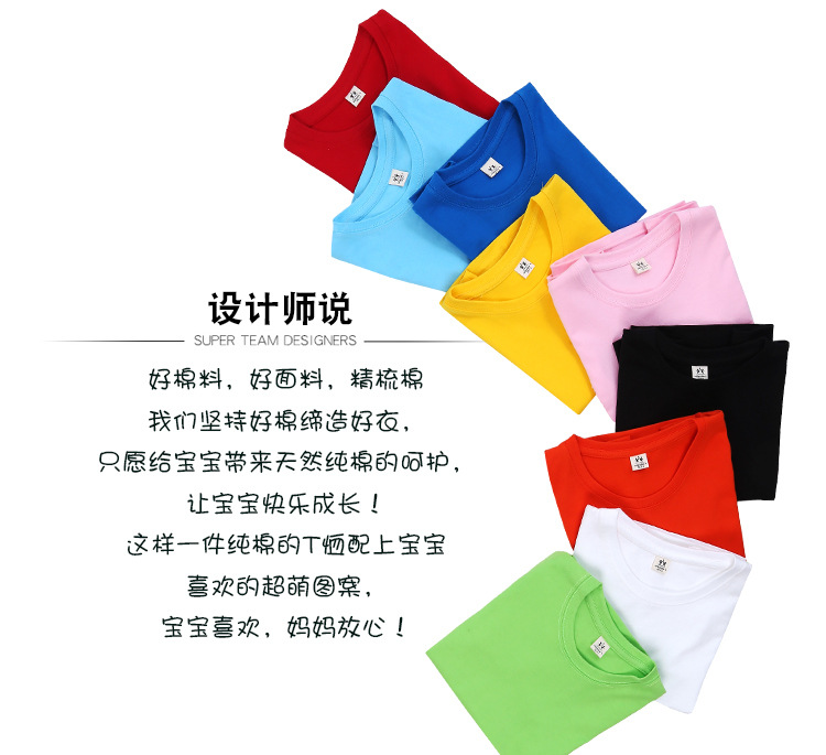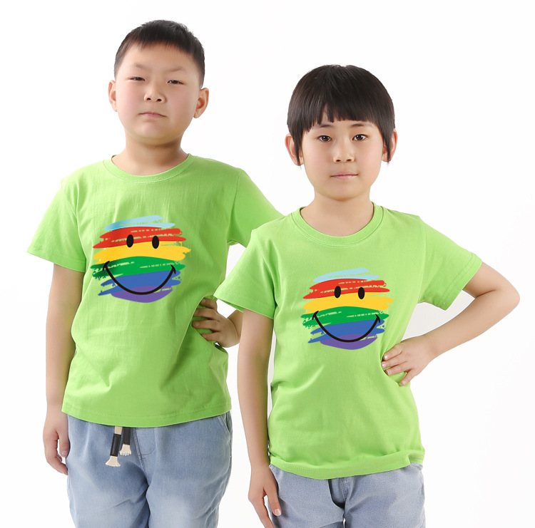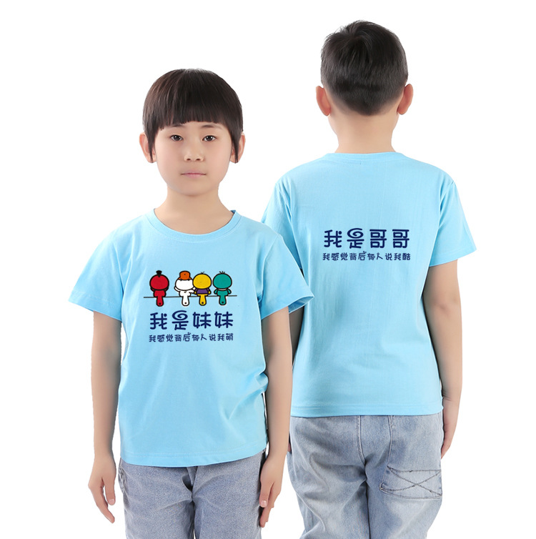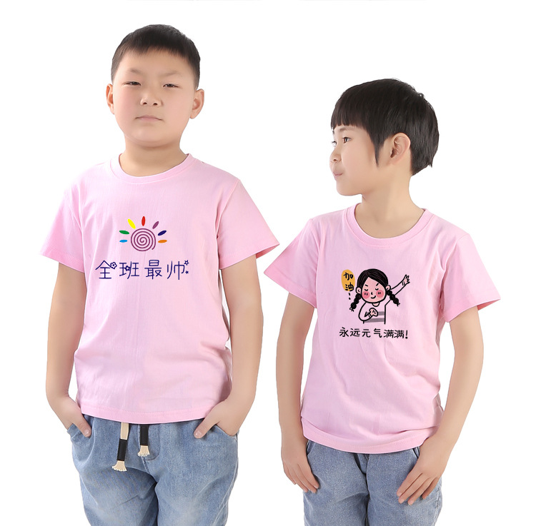 와우가 엄선한 아동용 순면 흰색 티셔츠 클래스 유니폼, 새로운 라운드 넥 반팔 프린트 로고 타이 염색 반팔 DIY 디자인