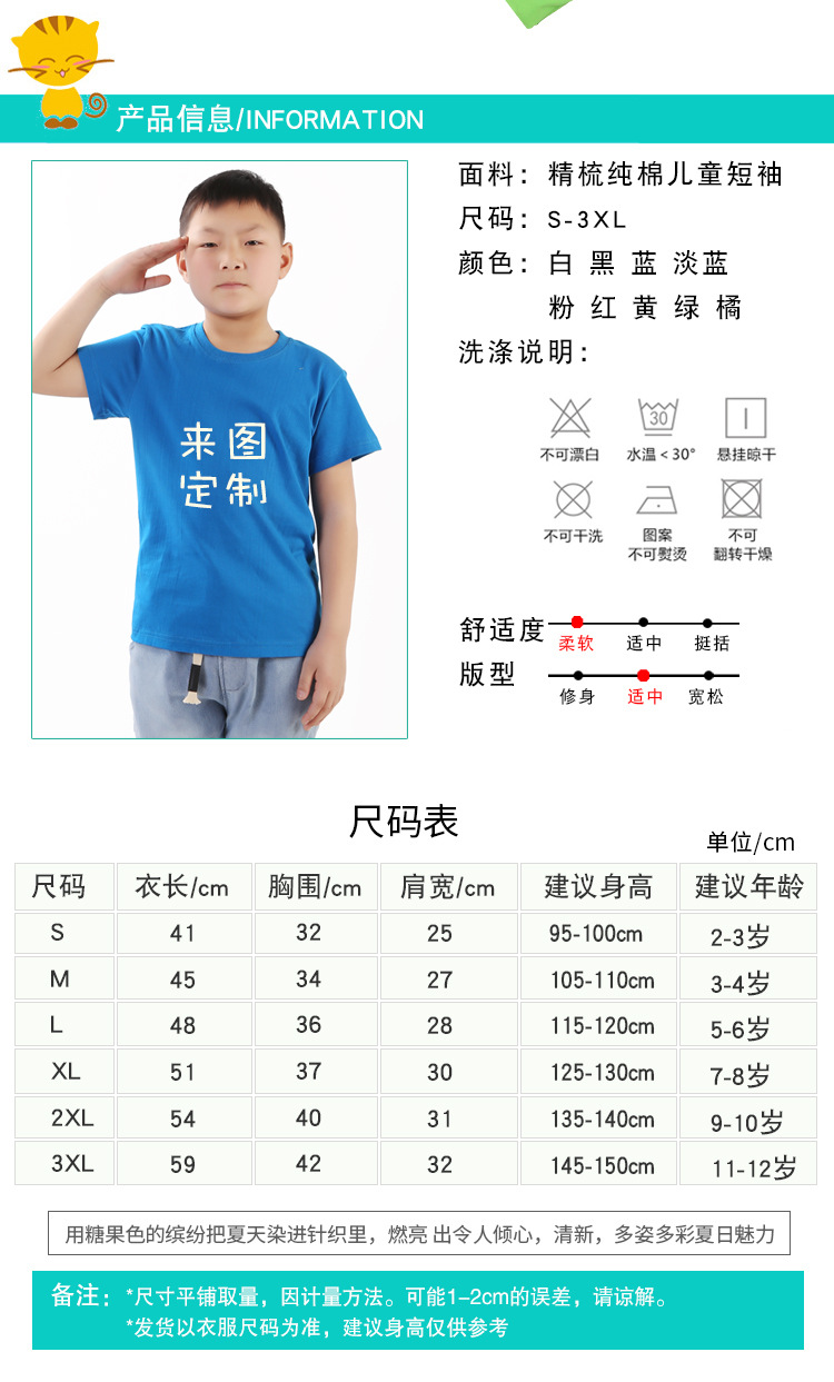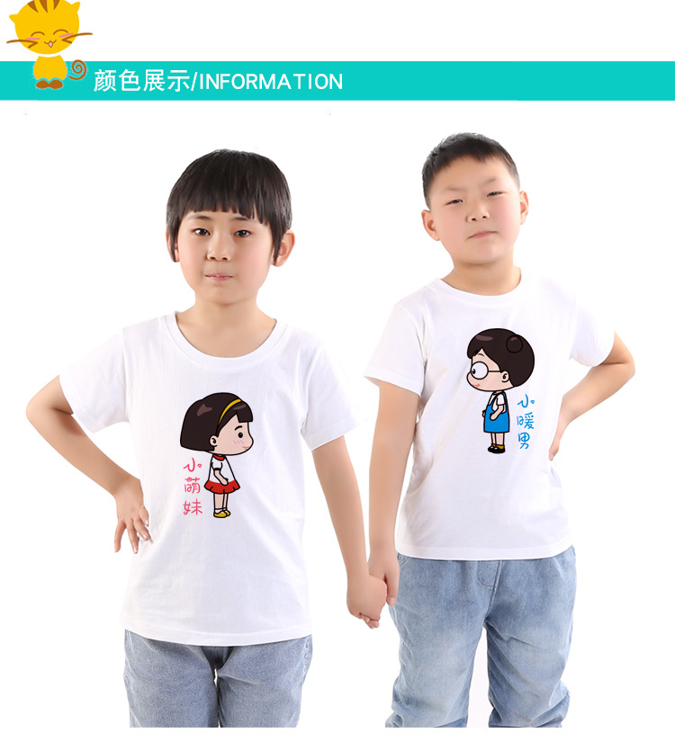 와우가 엄선한 아동용 순면 흰색 티셔츠 클래스 유니폼, 새로운 라운드 넥 반팔 프린트 로고 타이 염색 반팔 DIY 디자인스토어 가기