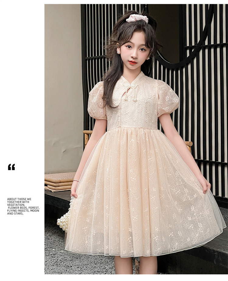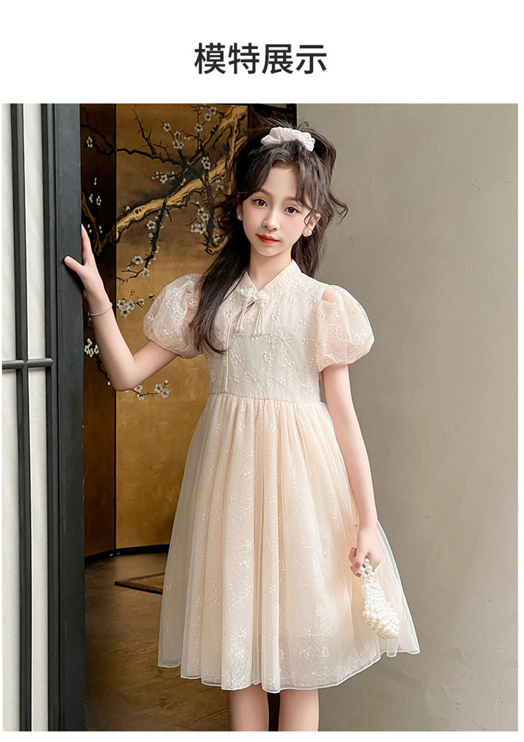 여자 여름 새로운 중국 스타일 원피스 2024 새로운 유행 서양 스타일 큰 아이 버블 소매 청삼 메쉬 공주 원피스스토어 가기