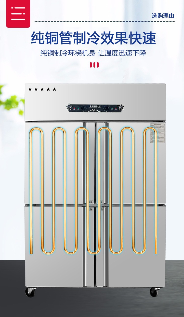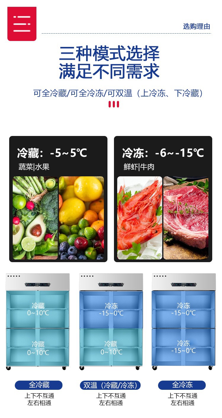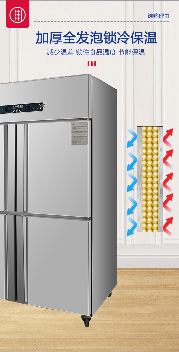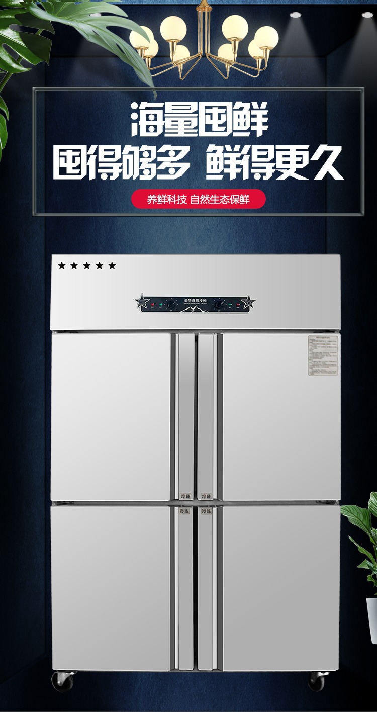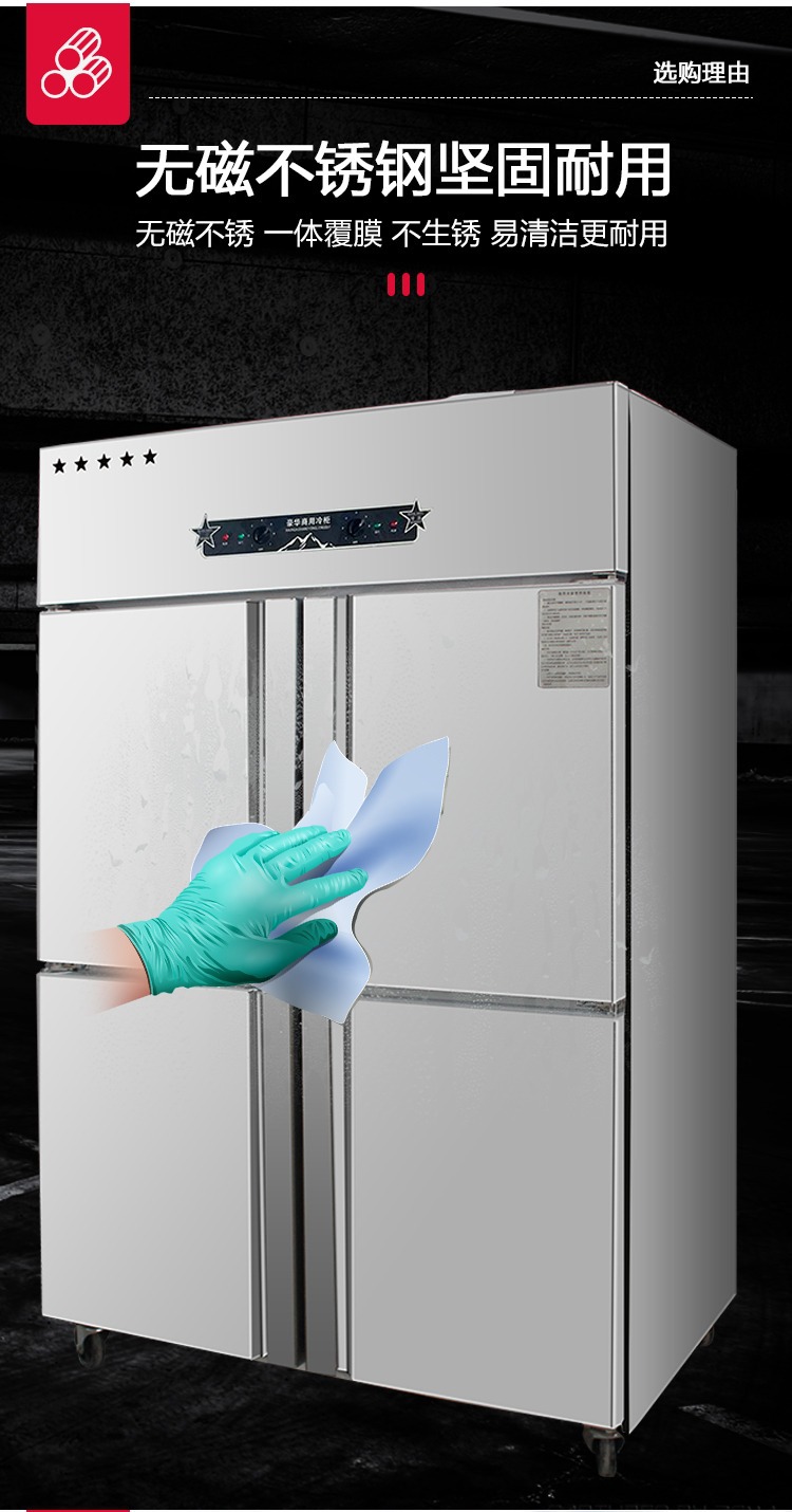 상업용 4-6 도어 냉장고 스테인레스 스틸 대용량 주방 수직 이중 온도 냉장 냉동고 야채 신선한 보관 캐비닛