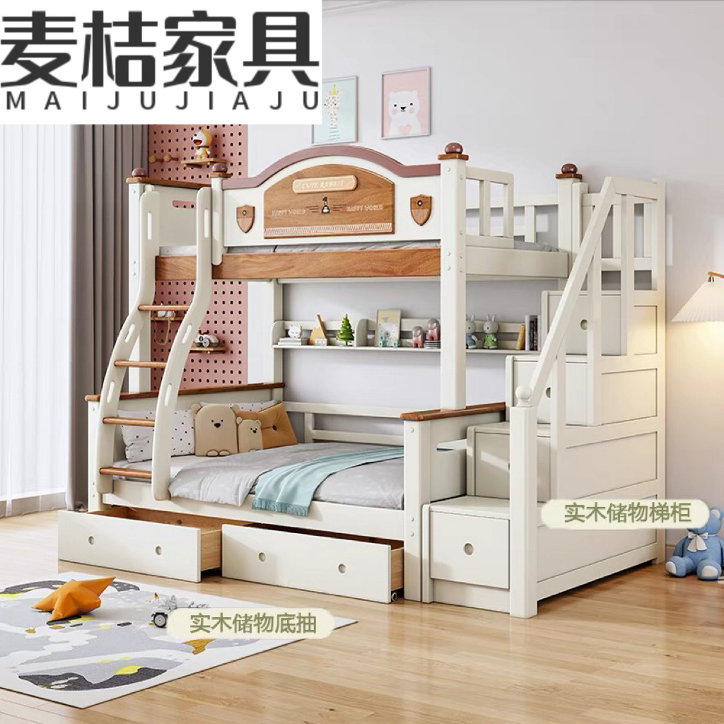상부 및 하부 이층 침대 모든 단단한 나무 높고 낮은 침대 소년 공주 침대 두 높고 낮은 침대 어린이 침대스토어 가기