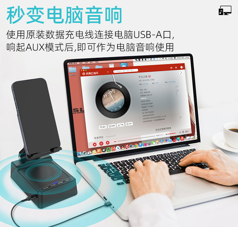 备注:插上数据充电线连接电脑USB可以当电脑音响使用