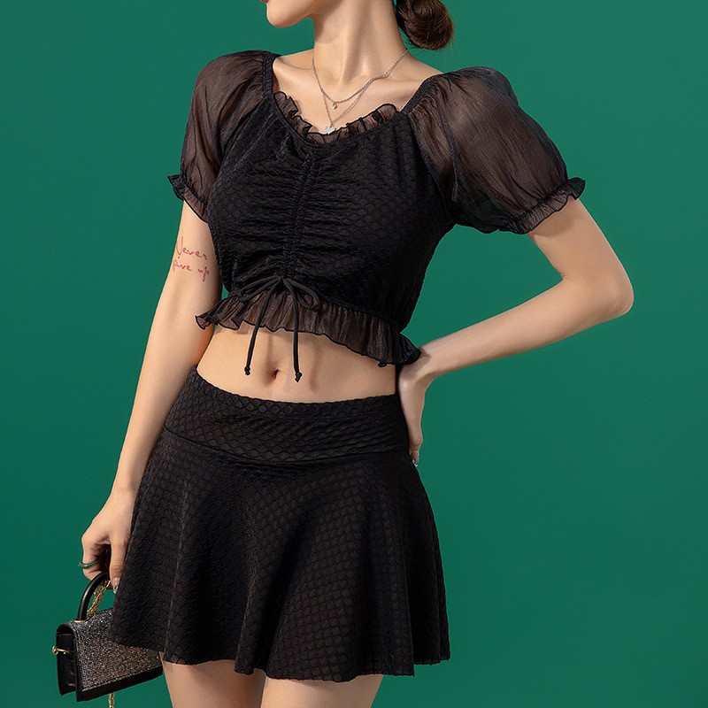 2025 수영복 여성 스플릿 솔리드 컬러 슬리밍 투피스 보수적 인 하이 웨이스트 전문 수영장 훈련 수영복 도매스토어 가기