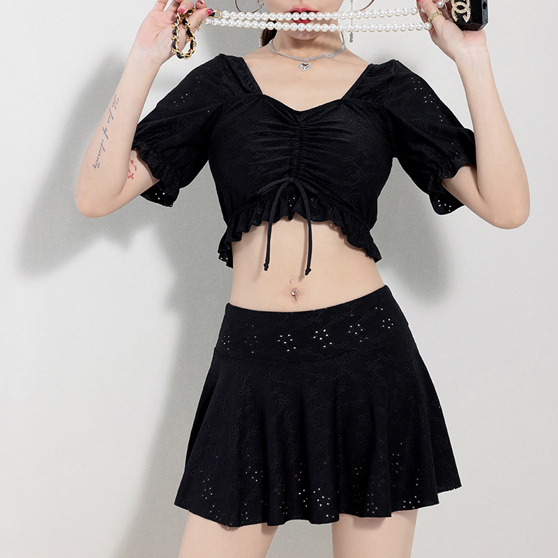 2025 수영복 여성 스플릿 솔리드 컬러 슬리밍 투피스 보수적 인 하이 웨이스트 전문 수영장 훈련 수영복 도매