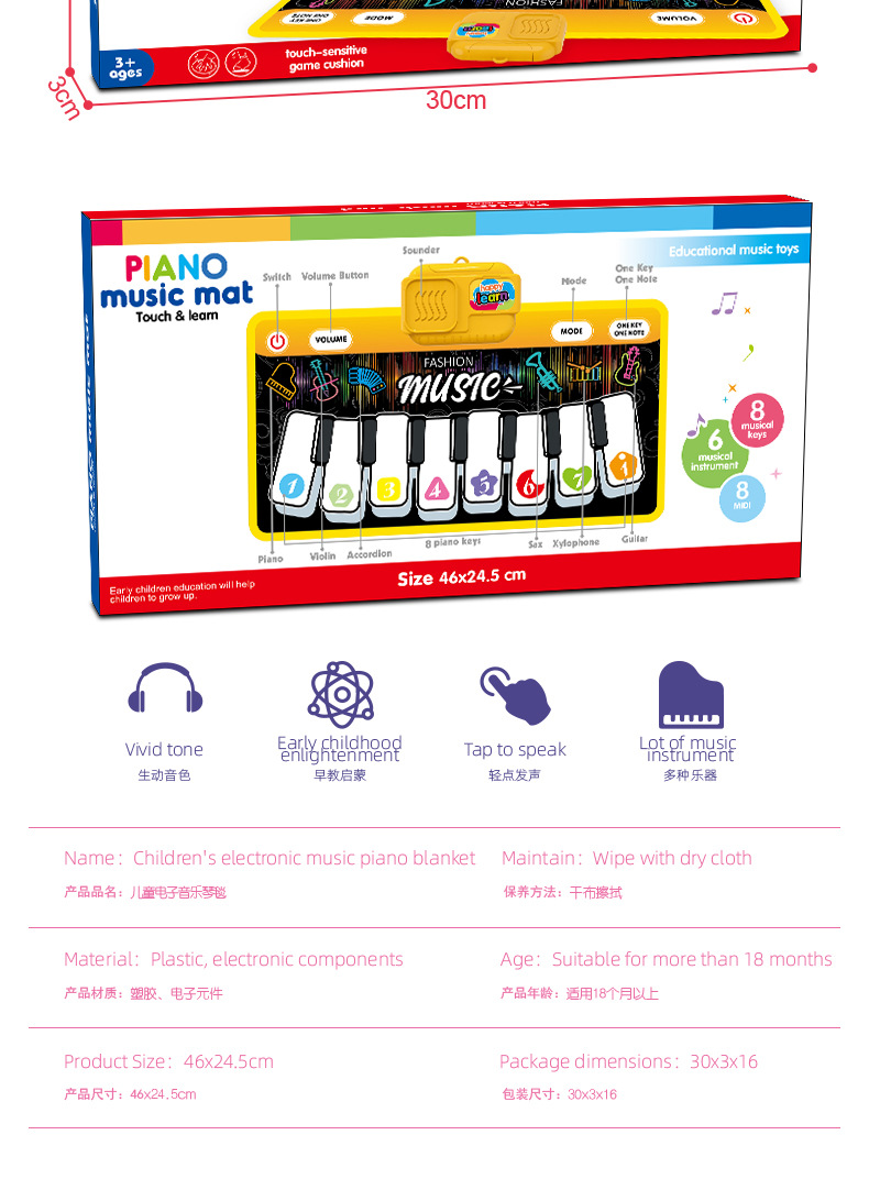 국경 간 신제품 어린이 교육 조기 교육 음악 담요 아기 관심 재배 피아노 게임 매트 부모-어린이 대화 형 장난감스토어 가기