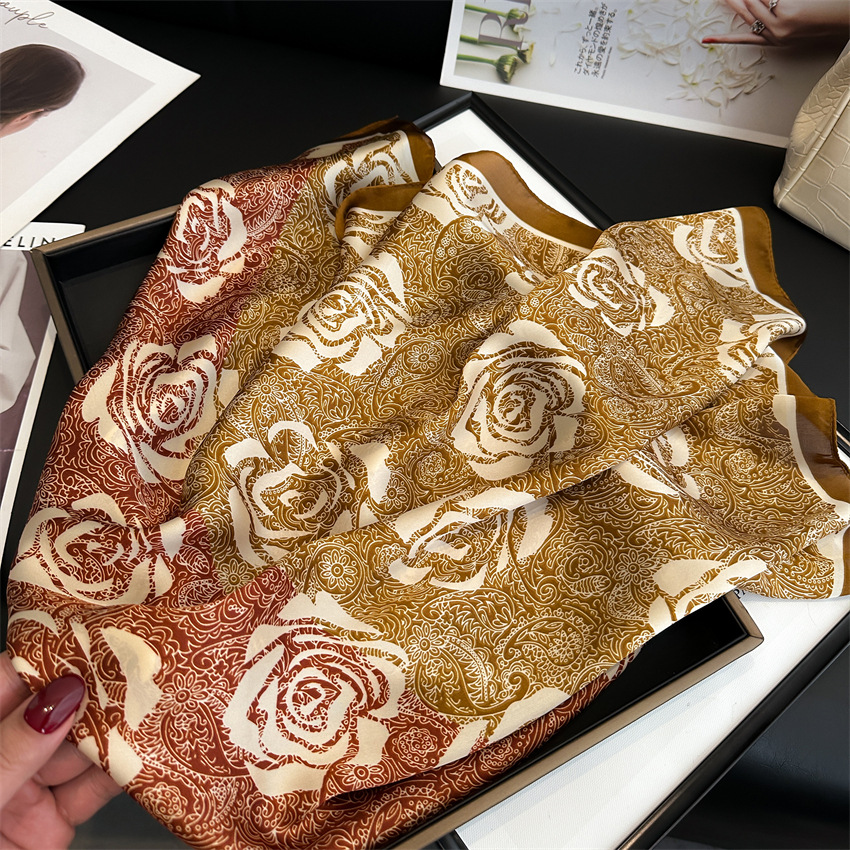 작은 샹펑 스카프 새로운 스타일 스퀘어 스카프 70cm 로즈 컬러 매칭 스카프 모방 실크 컬러 매칭 웨스턴 스타일 올 매치 스카프 여성스토어 가기