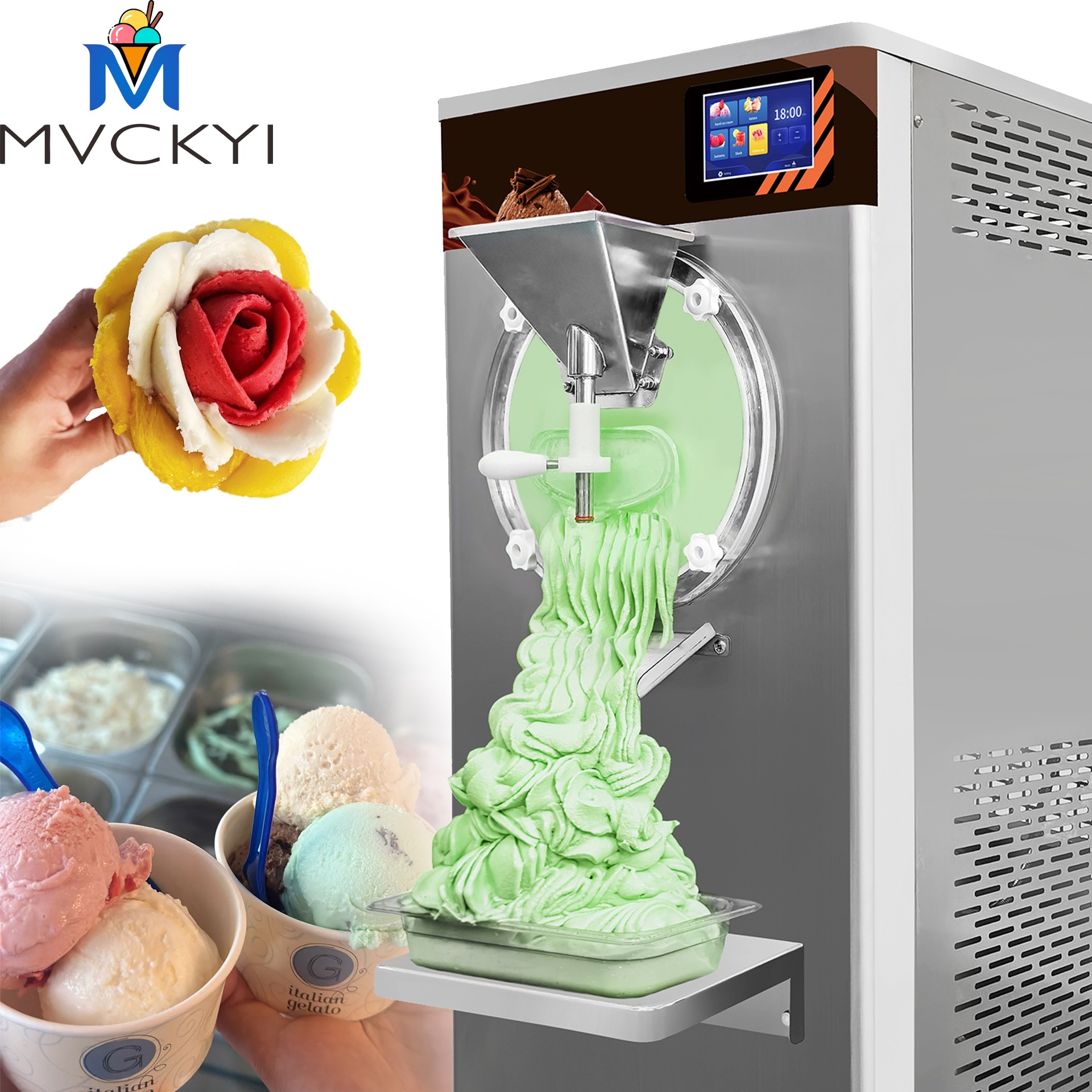 功能:可做5种冰淇淋(硬冰淇淋机/gelato/冰沙/雪芭/意大利冰)