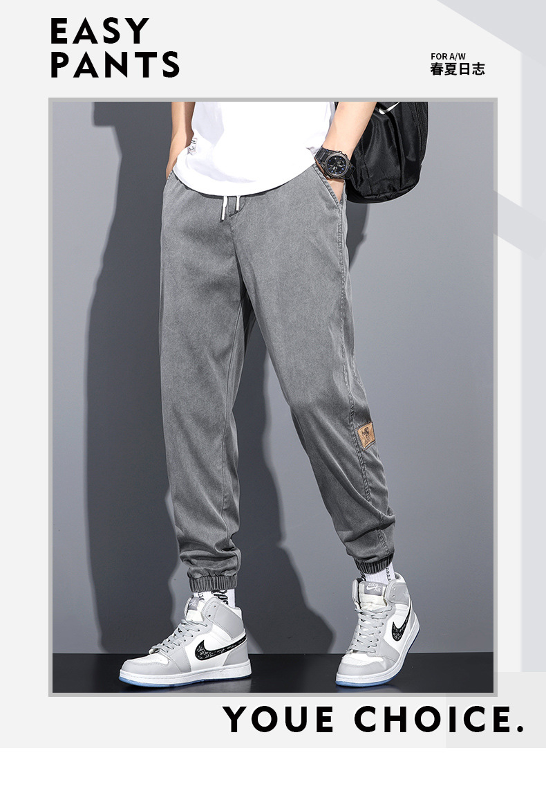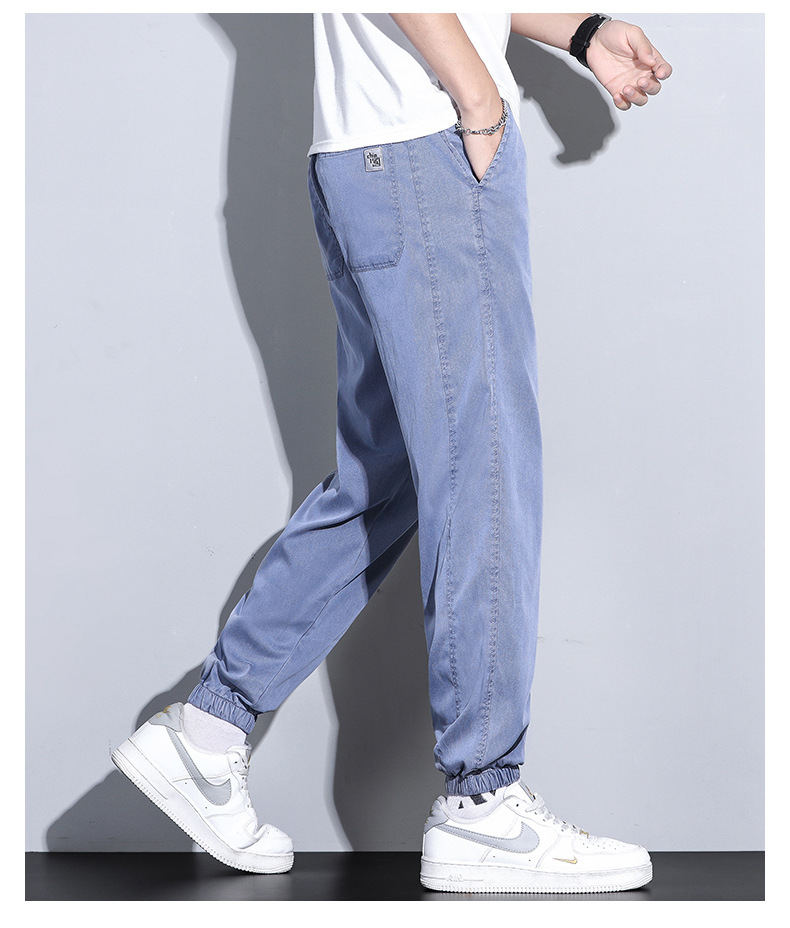 텐셀 캐주얼 바지 남자 2024 여름 얇은 느슨한 다리 아이스 실크 Lyocell 자른 바지스토어 가기