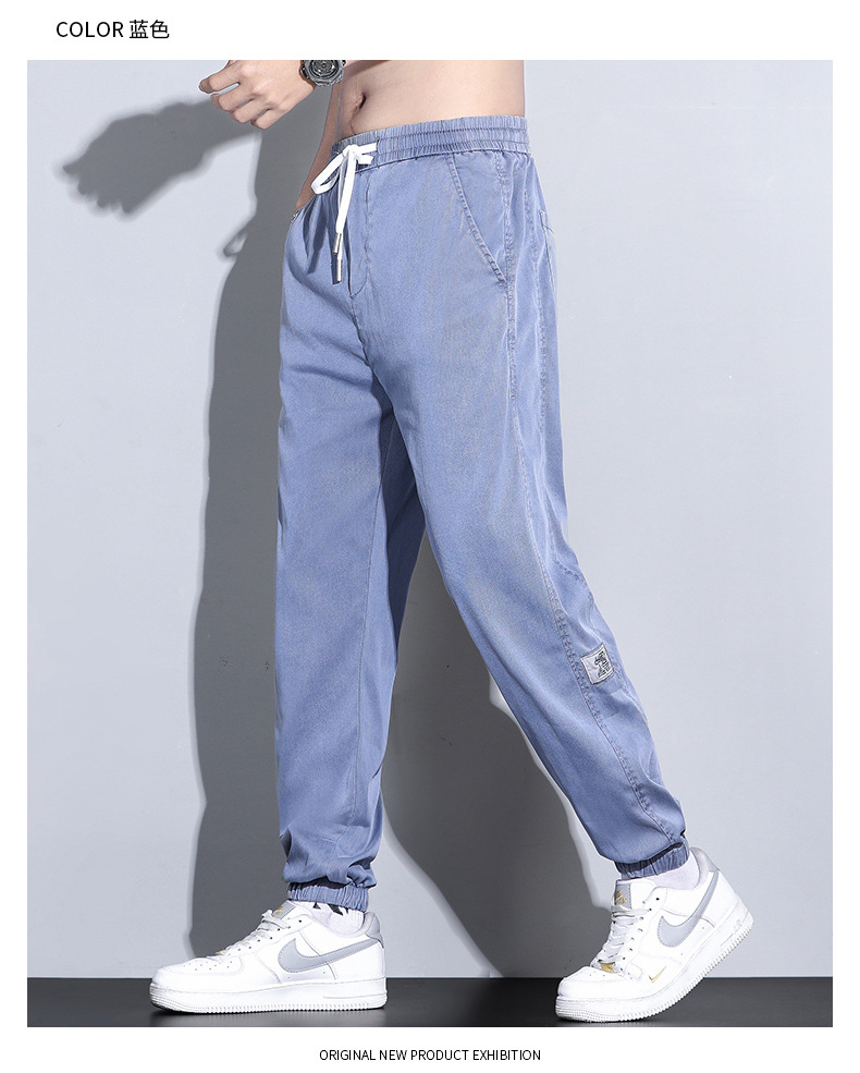텐셀 캐주얼 바지 남자 2024 여름 얇은 느슨한 다리 아이스 실크 Lyocell 자른 바지