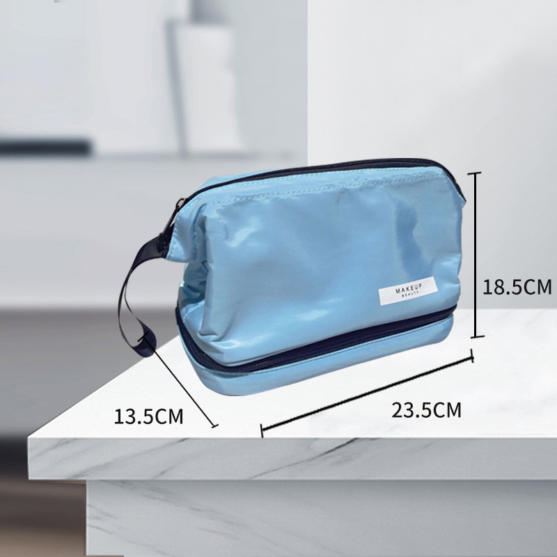 • 파란색 대형 더블 레이어 세면도구 및 화장품 가방