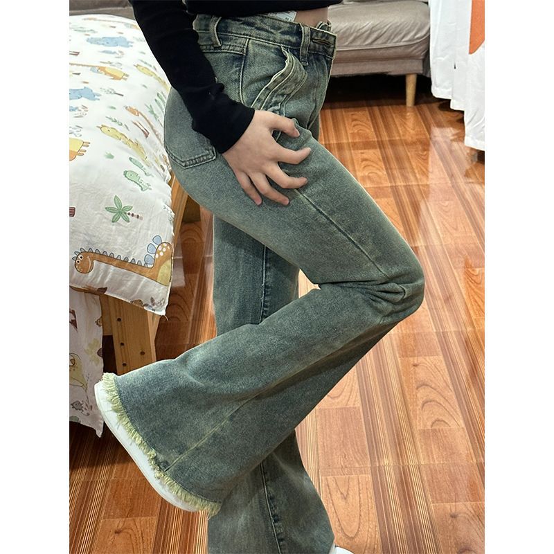 바지 여성의 2024 새로운 폭발 마이크로 라 청바지 미국식 하이 스트리트 레트로 플레어 팬츠 높은 허리 슬림 핏 말굽 바지스토어 가기