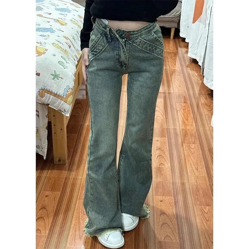 바지 여성의 2024 새로운 폭발 마이크로 라 청바지 미국식 하이 스트리트 레트로 플레어 팬츠 높은 허리 슬림 핏 말굽 바지