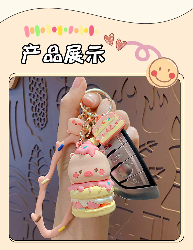 • 돼지 MengMeng 디저트 키 체인-마카롱