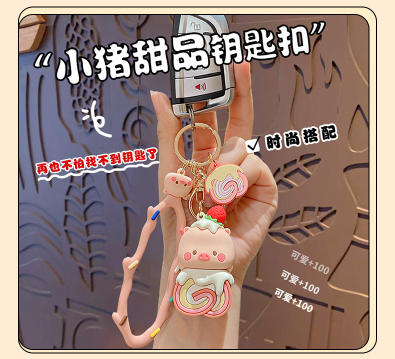 창조적 인 귀여운 돼지 Mengmeng 디저트 키 체인 커플 만화 Schoolbag 펜던트 자동차 키 체인 선물 도매스토어 가기