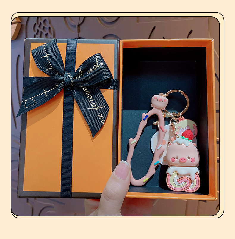 창조적 인 귀여운 돼지 Mengmeng 디저트 키 체인 커플 만화 Schoolbag 펜던트 자동차 키 체인 선물 도매