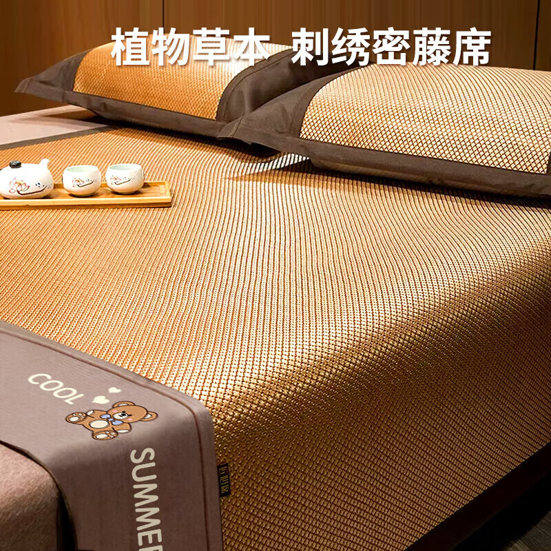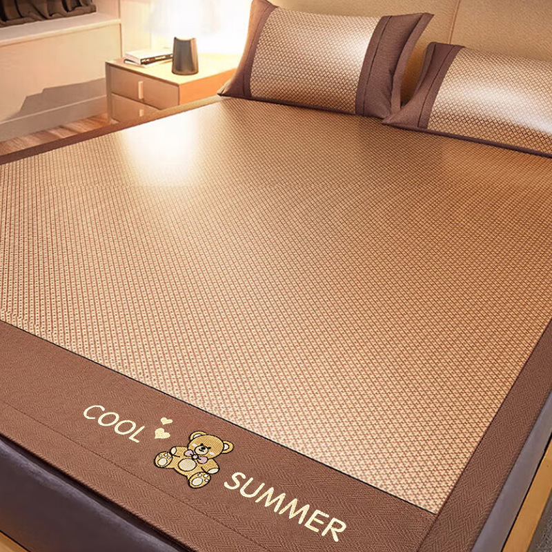 여름 아이스 린넨 매트 2025 신상 여름 아이스 실크 매트 3종 세트 대나무 매트 침대 시트 세탁 가능 해외 무역 도매스토어 가기