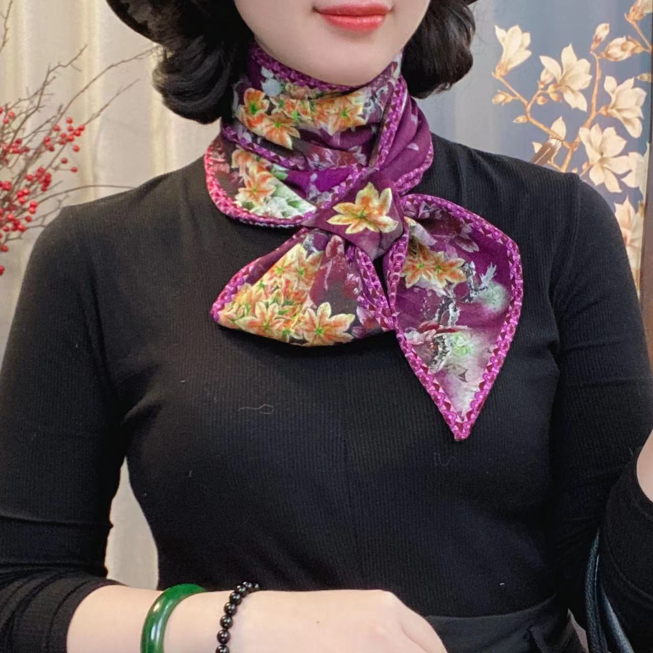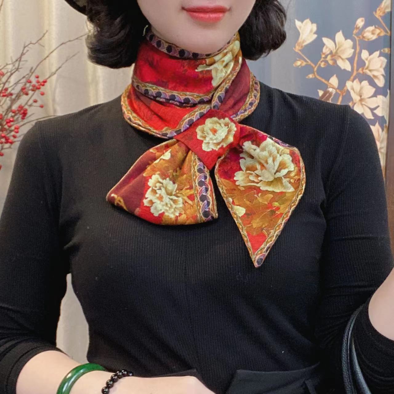 컬러 꽃 고대 라임 스카프 새 실 목화 따뜻한 귀 스카프 새해 중국 스타일 작은 긴 스카프