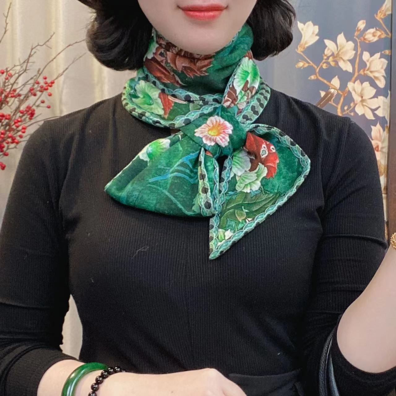 • 고대 긴 수건-에메랄드 그린 목련