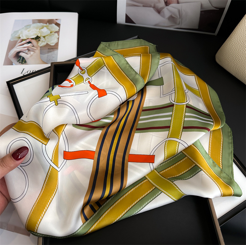 고급 감각 간단한 스카프 모든 경기 스카프 모방 실크 스퀘어 스카프 70cm 기하학적 색상 매칭 체인 스카프 새로운 여성