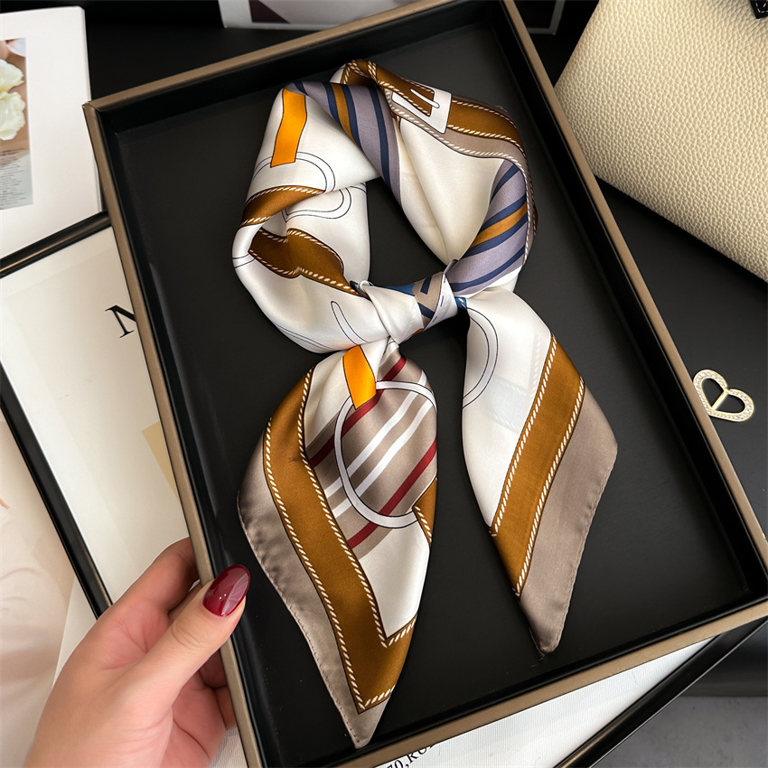 고급 감각 간단한 스카프 모든 경기 스카프 모방 실크 스퀘어 스카프 70cm 기하학적 색상 매칭 체인 스카프 새로운 여성스토어 가기