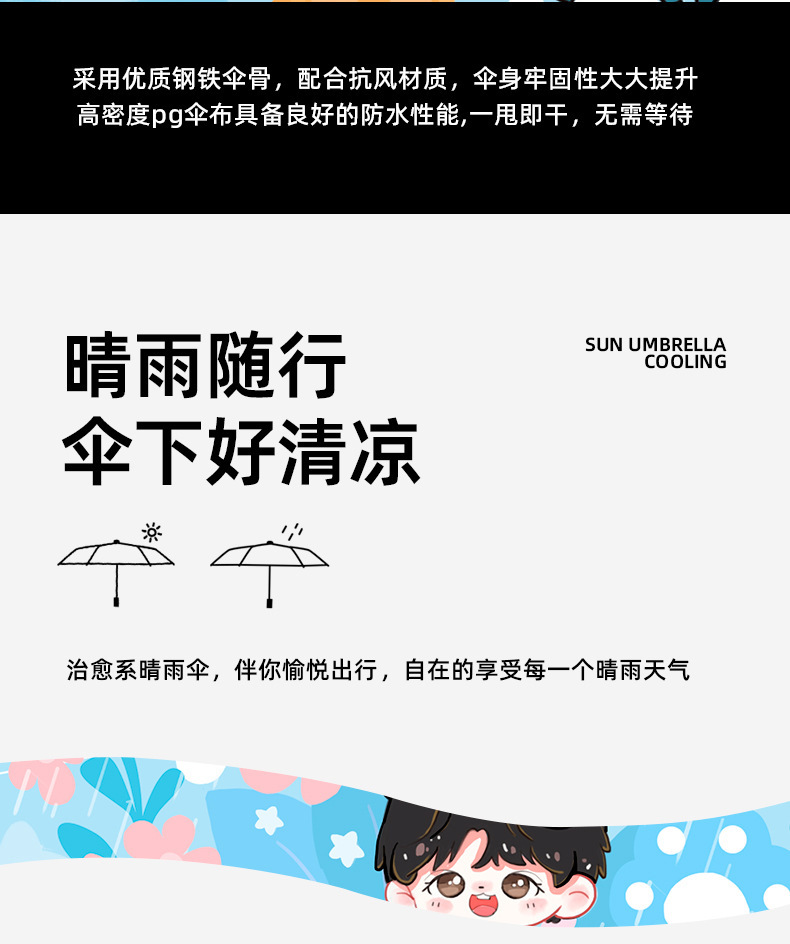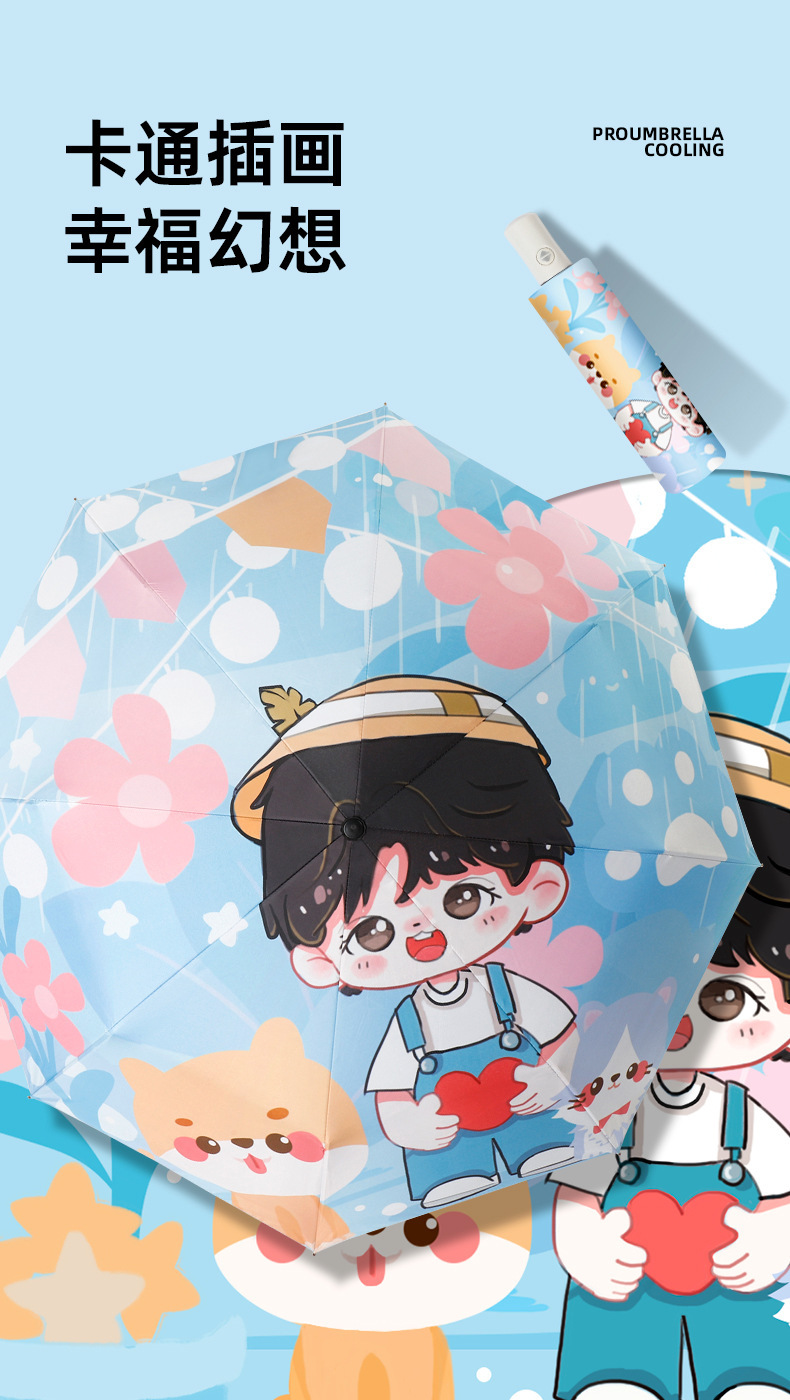 높은 가치의 만화 우산 자동 우산 접이식 우산 높은 수준의 여성 차양 우산 태양 우산 3 배 우산 도매스토어 가기