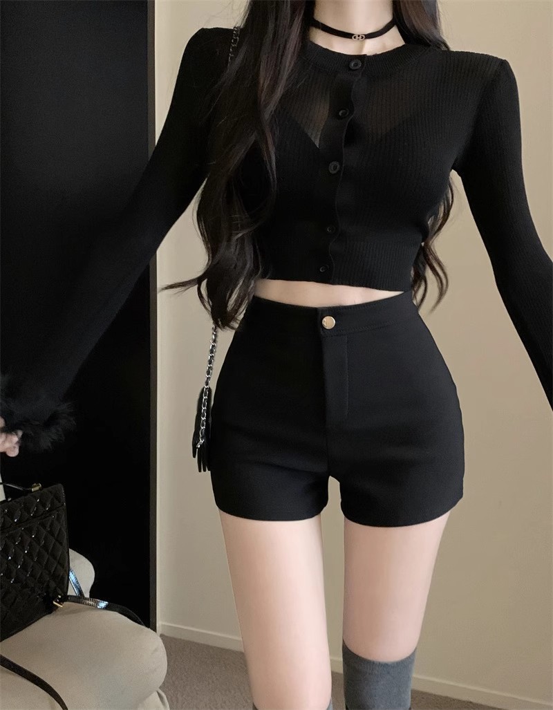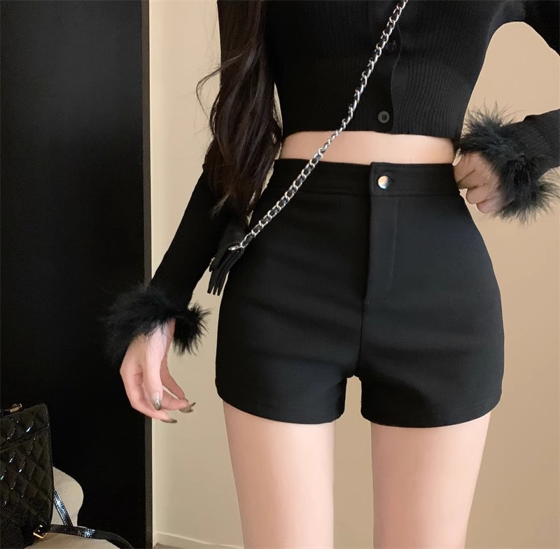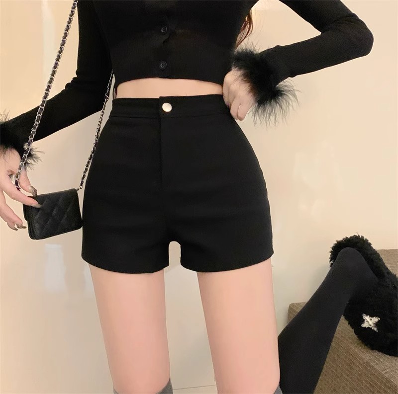 데님 반바지 여성의 뜨거운 바지 높은 허리 엉덩이 캐주얼 바지 여성용 스트레치 타이트 블랙 반바지 여름 슬림 스트레이트 바지