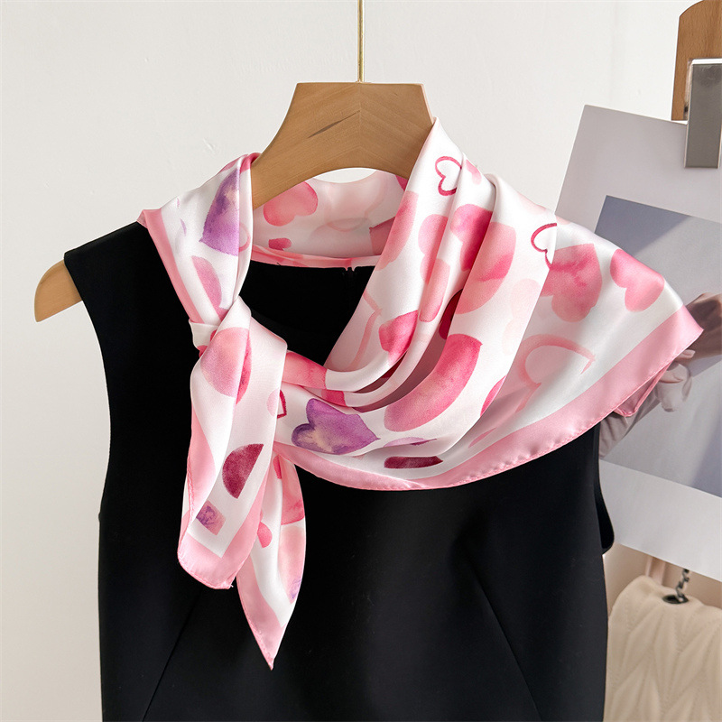 목련 스카프 여성 스카프 모방 실크 새로운 작은 광장 스카프 달콤한 인쇄 스카프 목도리 올매치 태양 보호