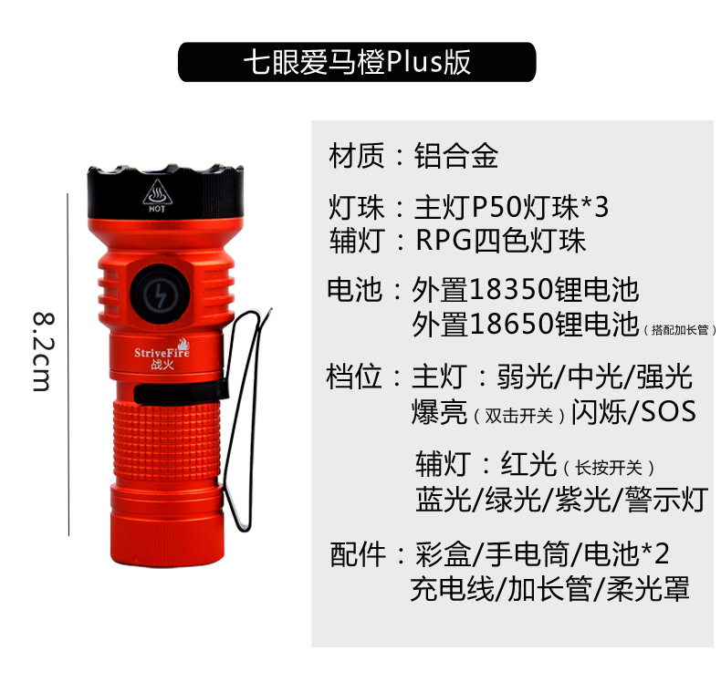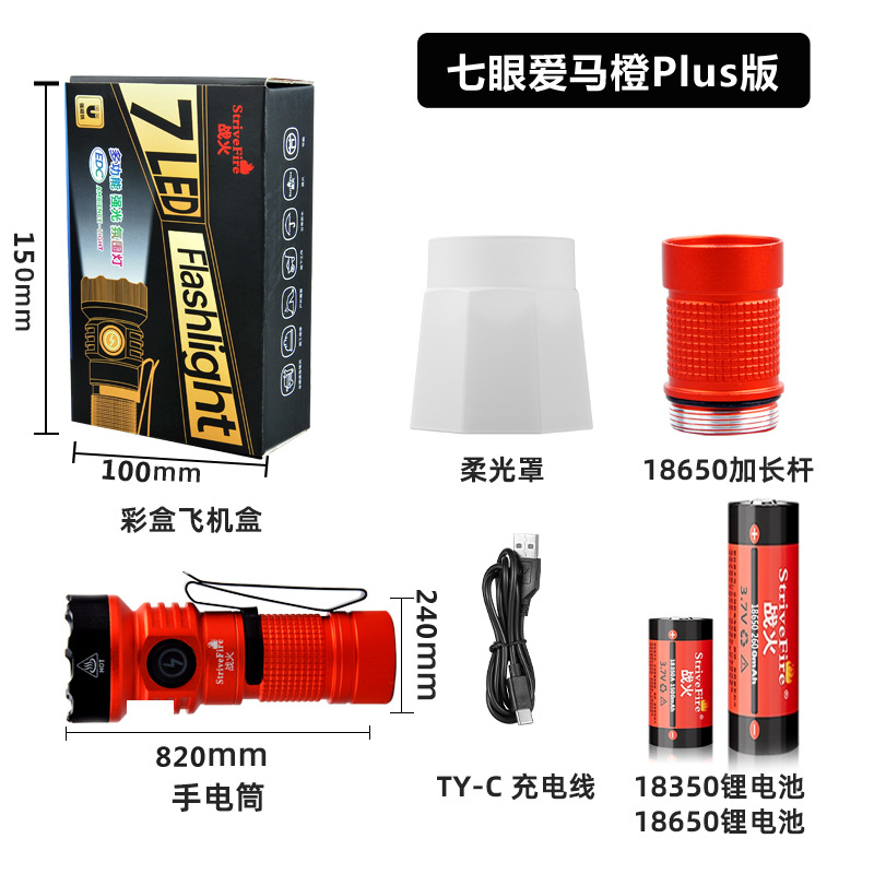 • 일곱 눈 사랑 말 오렌지 플러스 버전 [2 배터리 연장 튜브 USB 케이블 소프트 라이트 커버] 11 기어 조명