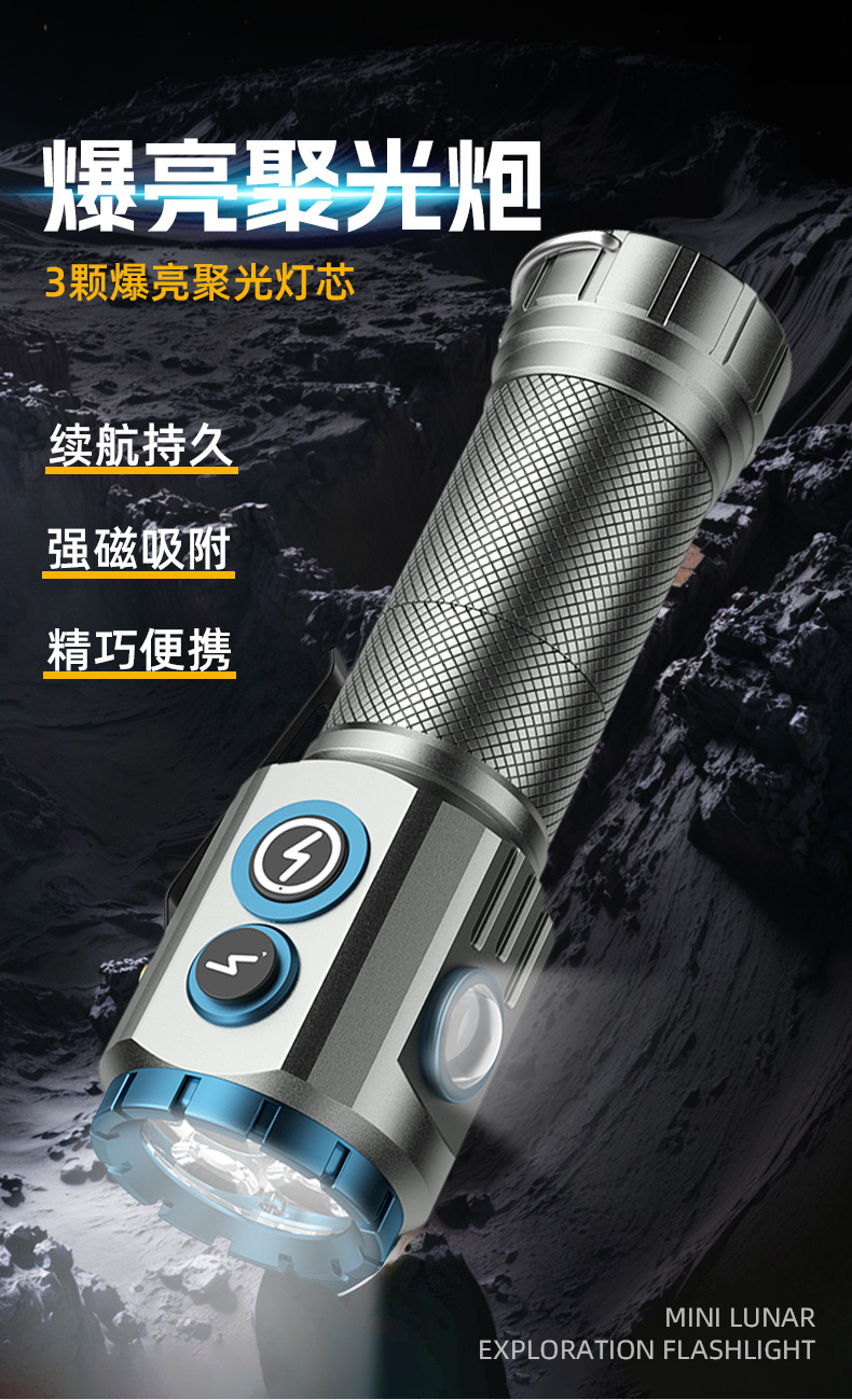 새로운 도매 3 눈 괴물 강한 빛 손전등 충전 슈퍼 밝은 장거리 led 홈 야외 다기능스토어 가기