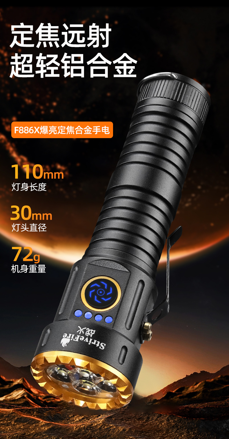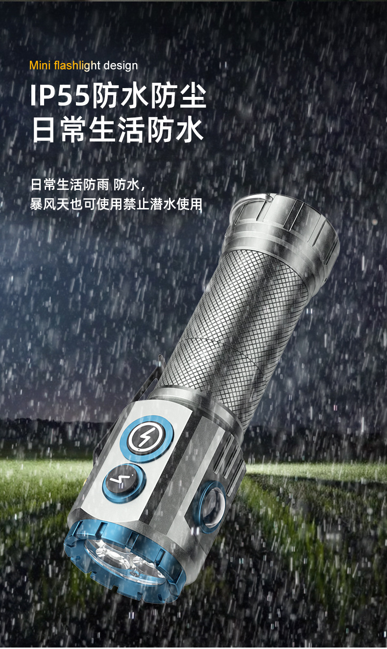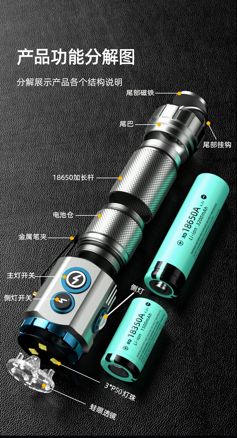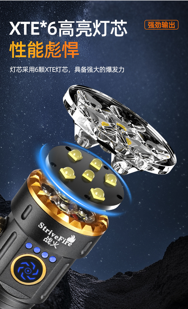 새로운 도매 3 눈 괴물 강한 빛 손전등 충전 슈퍼 밝은 장거리 led 홈 야외 다기능