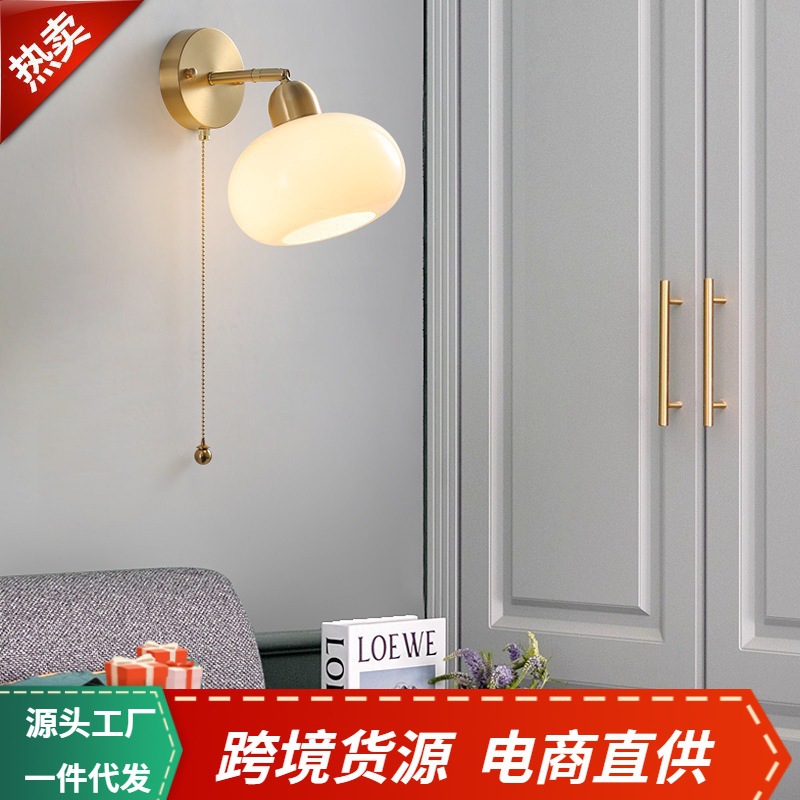 간단한 북유럽 스타일 감 유리 벽 램프 홈 라이트 럭셔리 모든 구리 벽 램프 복도 침실 램프스토어 가기