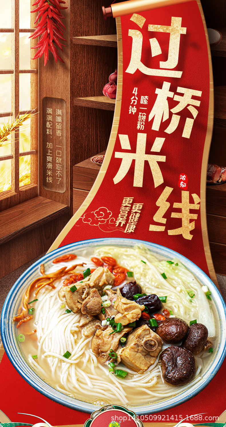 Daohuaxiang 교량 쌀국수 인스턴트 양조 닭고기 수프 쌀 당면 비 튀김 인스턴트 국수 가방 도매 공장 직접 판매스토어 가기