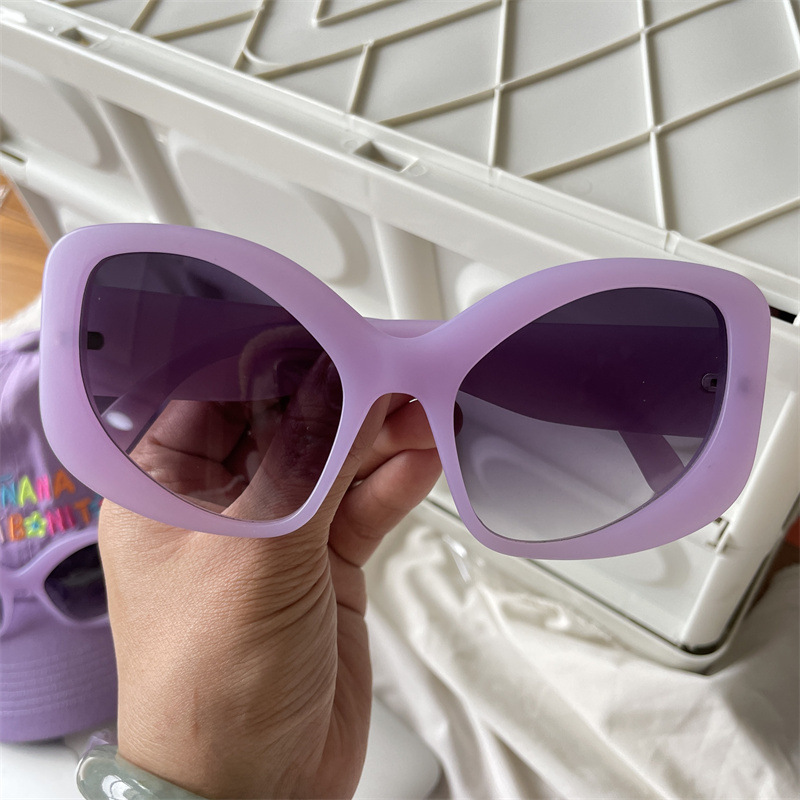 라이트 퍼플 큰 프레임 눈 보호 선글라스 2024 새로운 패션 복고풍 다목적 선 스크린 고양이 눈 선글라스 여성