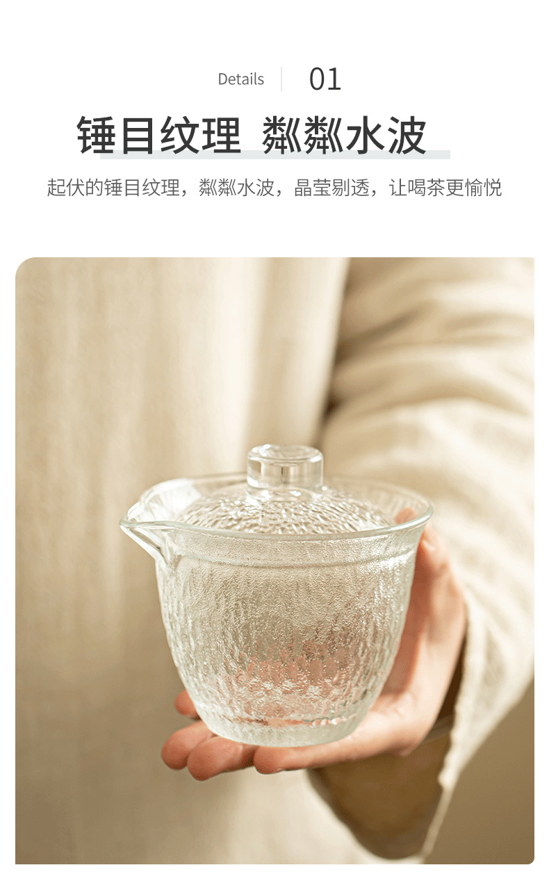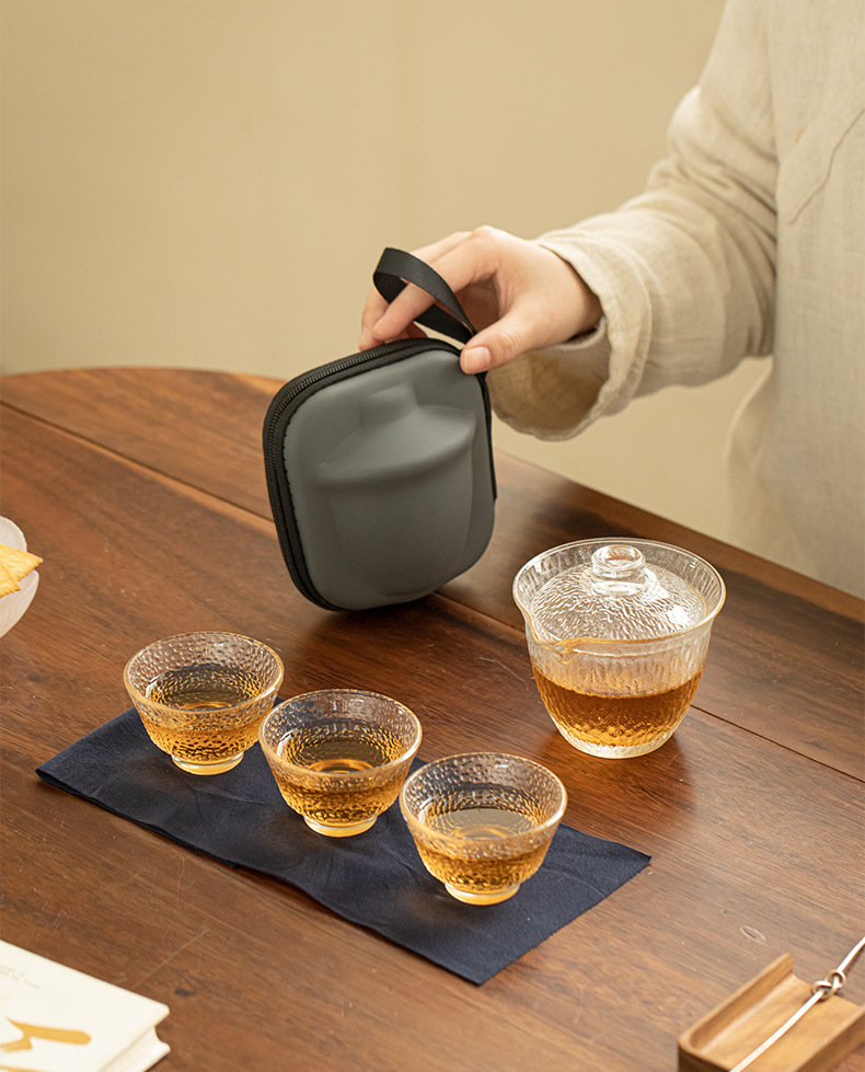 • 유리 망치 냄비 3 컵 여행 차 세트