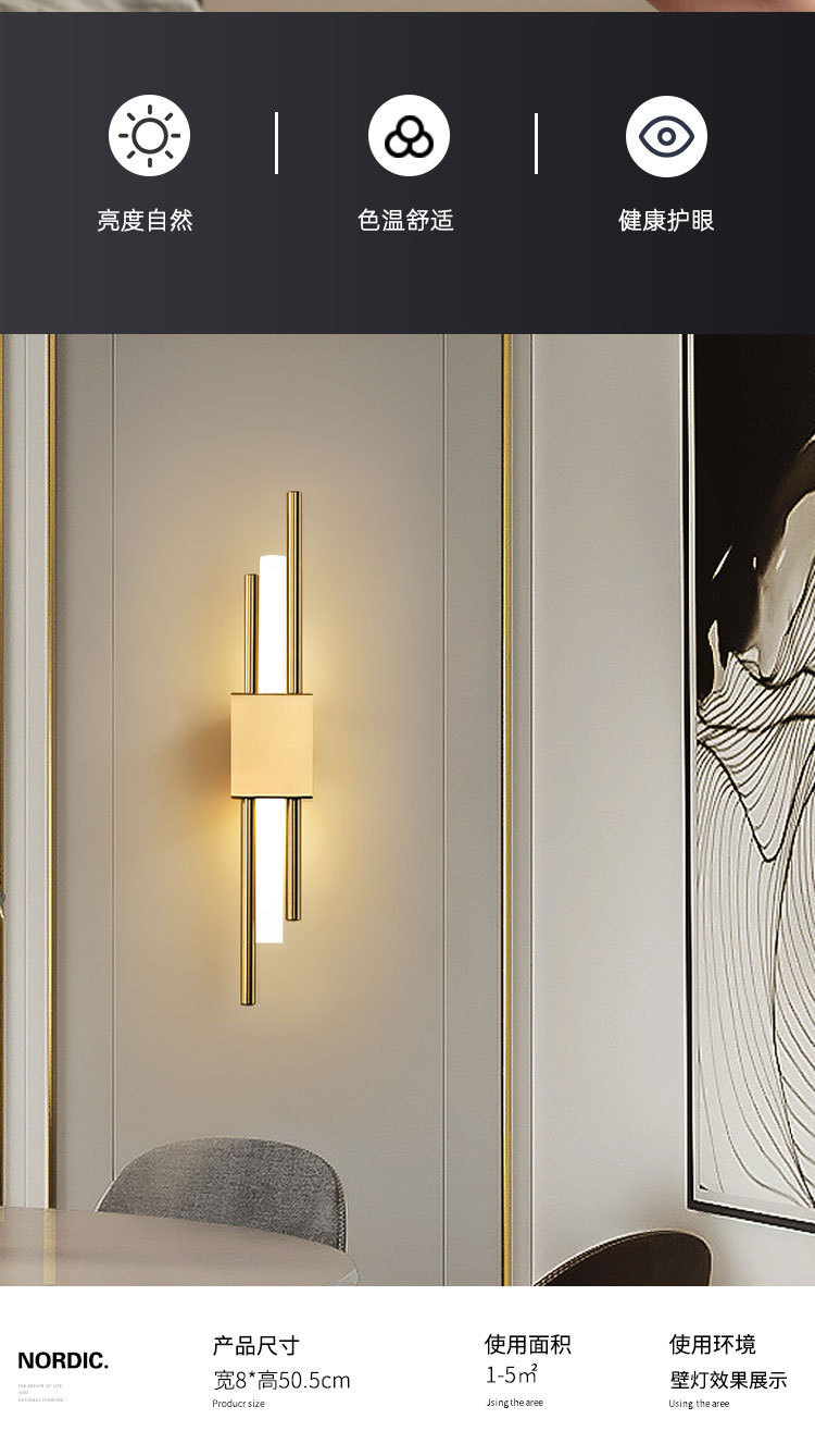 포스트 모던 라이트 럭셔리 거실 배경 벽 램프 호텔 계단 통로 침실 침실 모든 구리 대리석 벽 램프