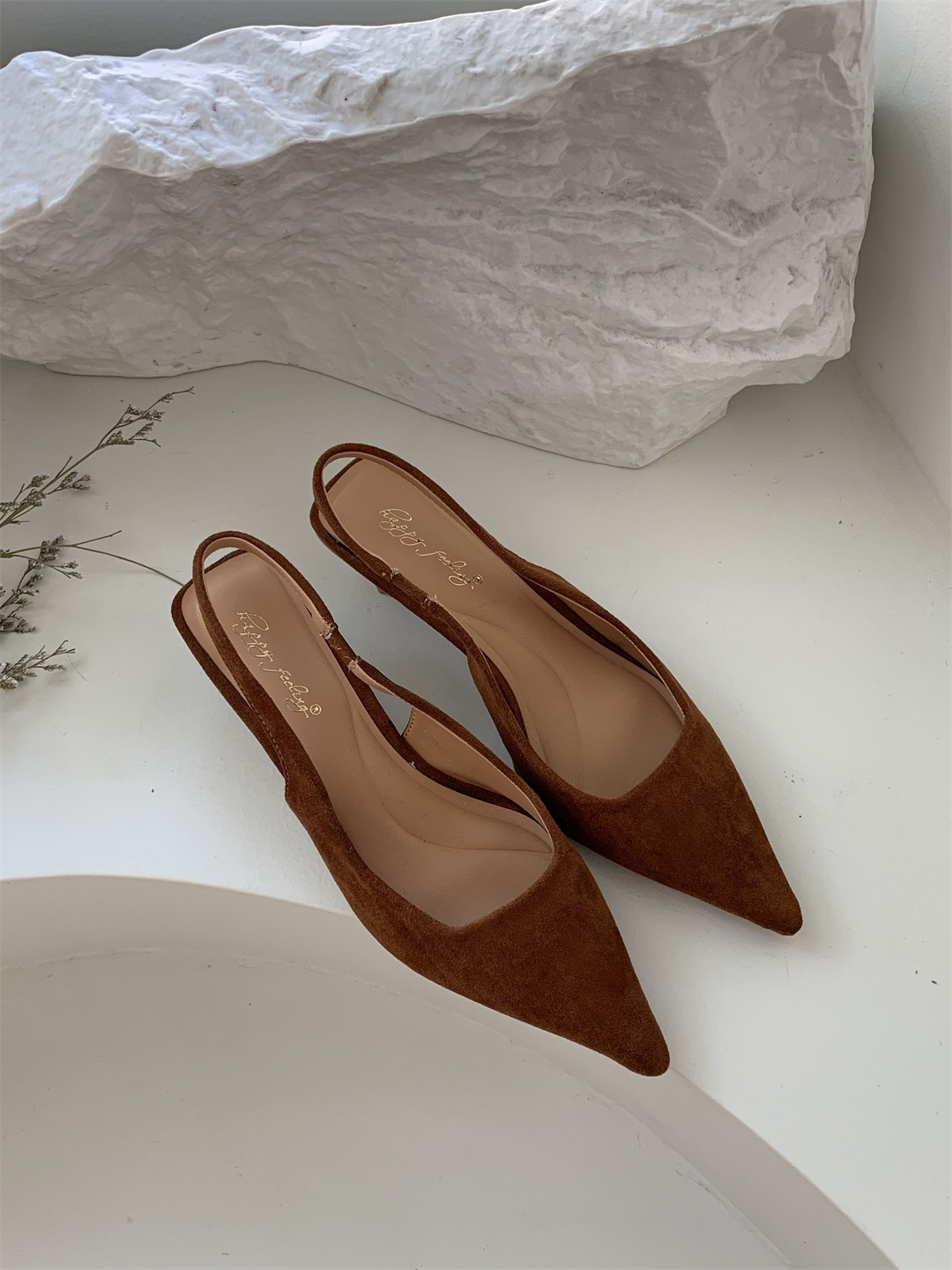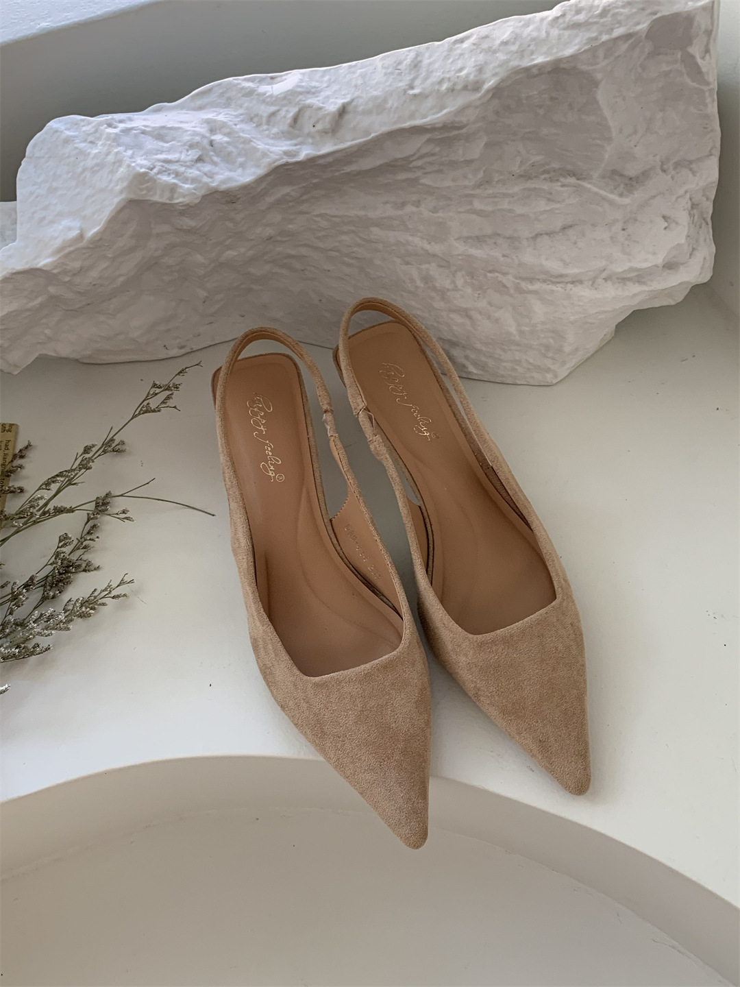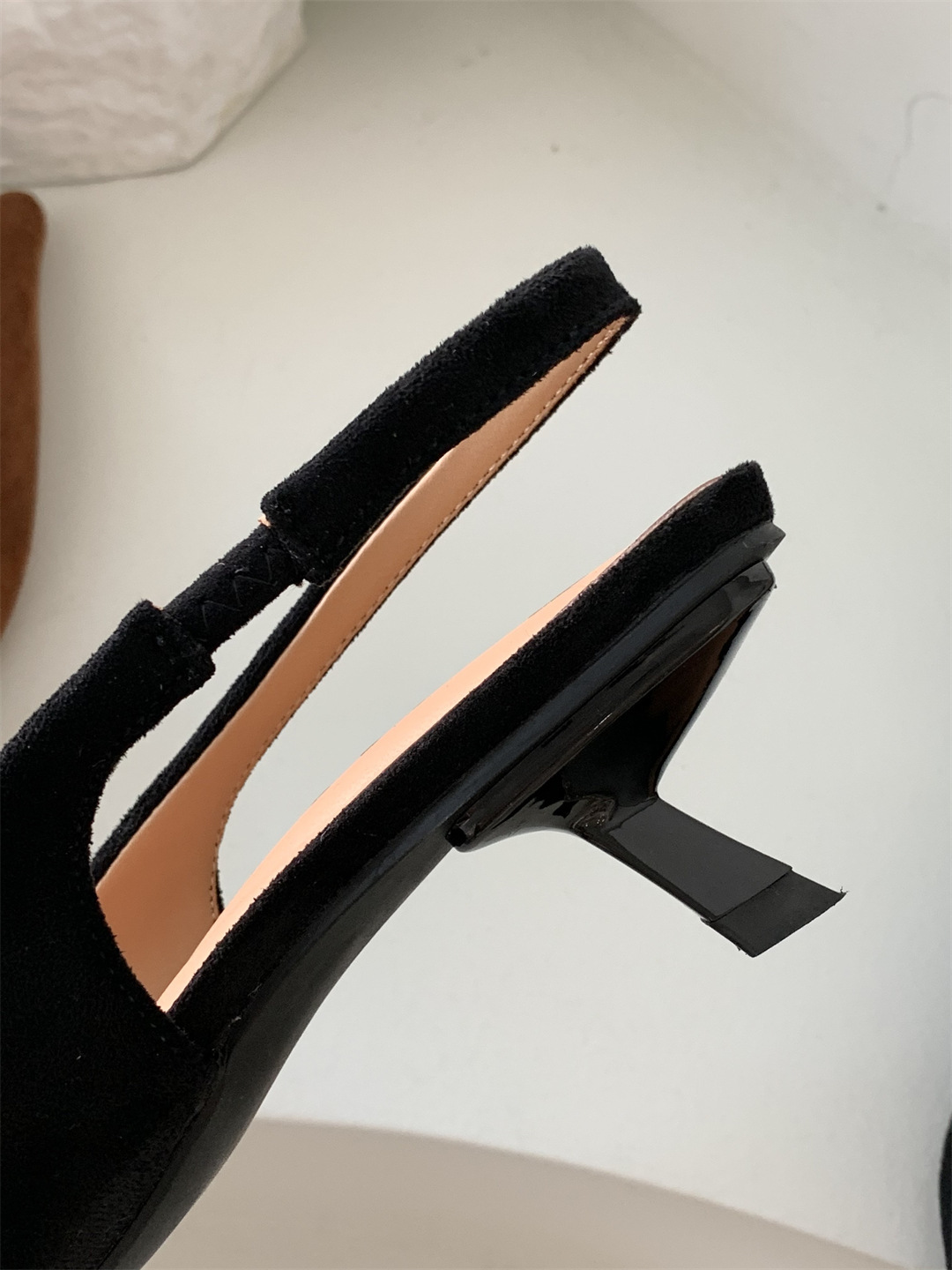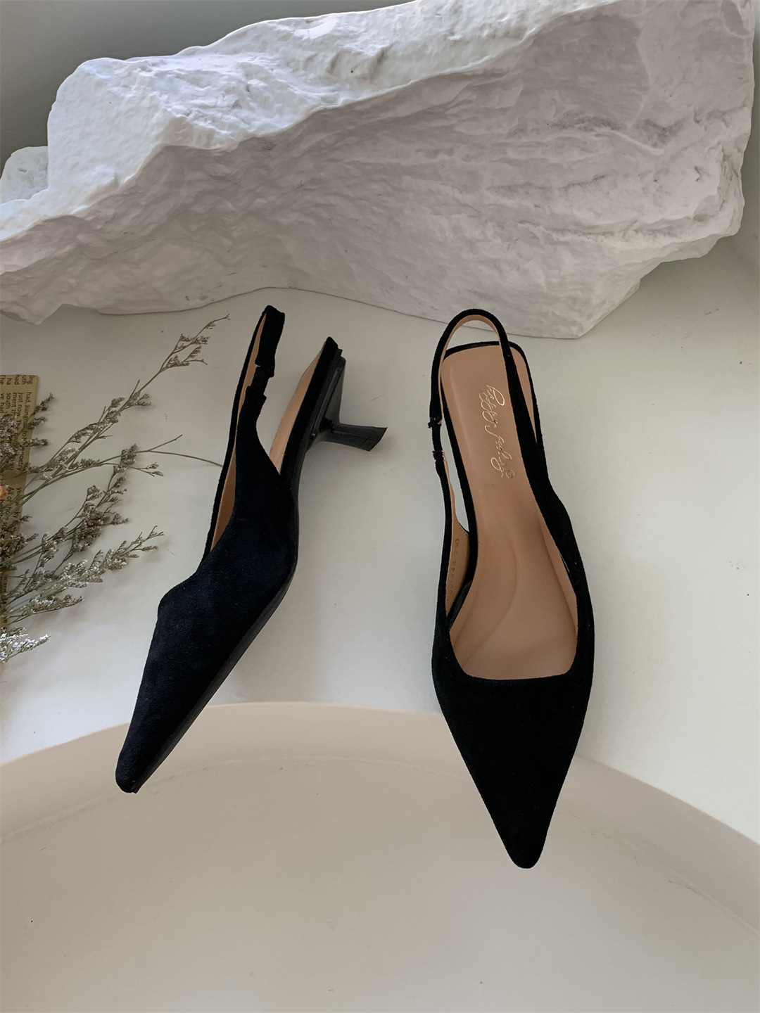 2024 새로운 여름 탄성 밴드 백 빈 신발 벨벳 하이힐 스틸레토 뾰족한 발가락 커버 샌들 여성 신발 프랑스 스타일