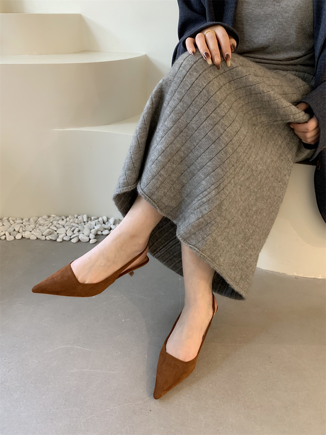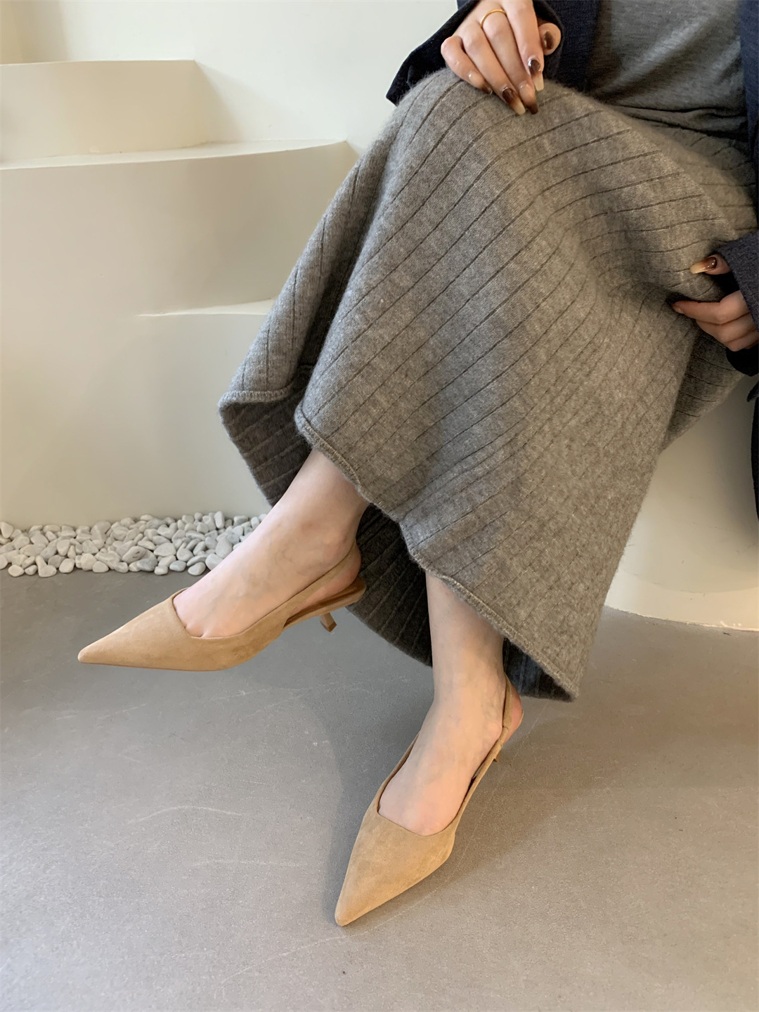 2024 새로운 여름 탄성 밴드 백 빈 신발 벨벳 하이힐 스틸레토 뾰족한 발가락 커버 샌들 여성 신발 프랑스 스타일스토어 가기