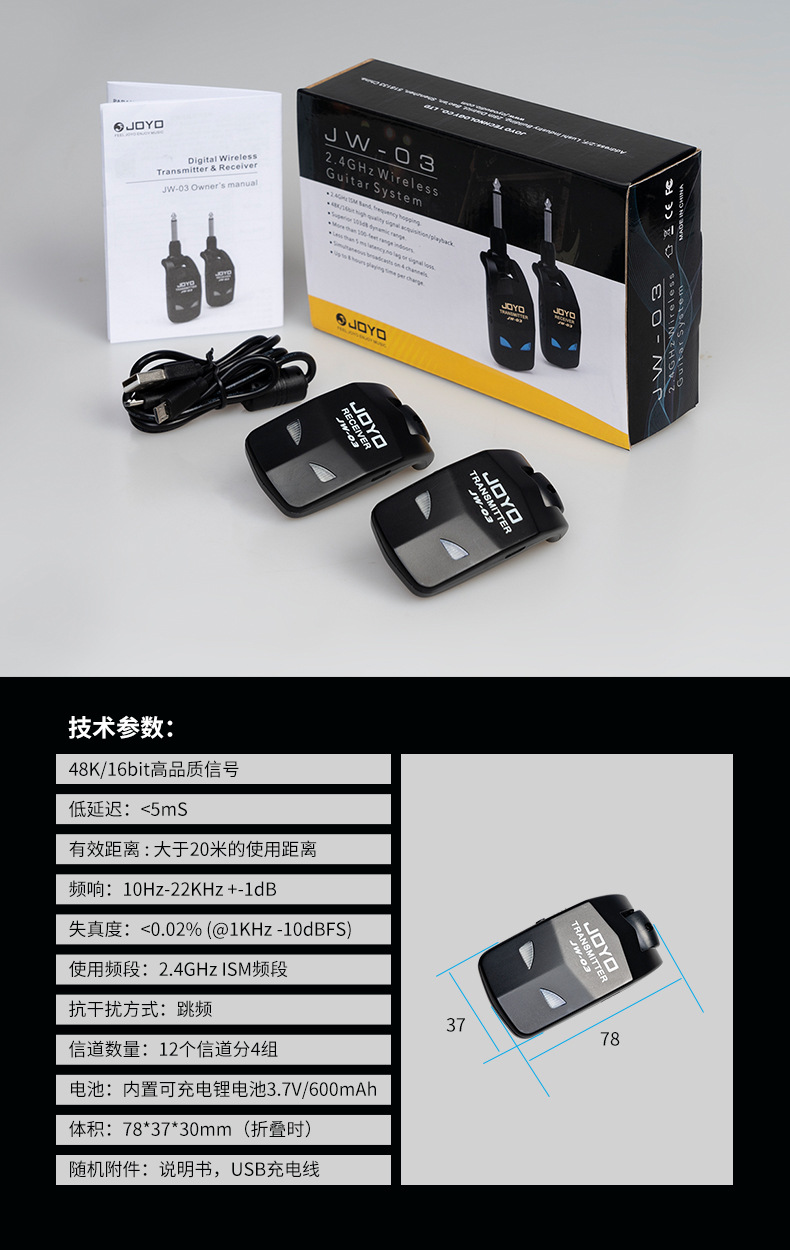 JOYO JW-03 기타 무선 전송 시스템 무선 트랜시버 JOYO 무선 수신기