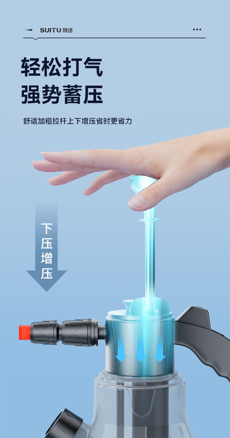 1.加压打气次数(有明显压力,按压手柄下压比较吃力)即停止加压,按压省力扣既可喷泡沫。
