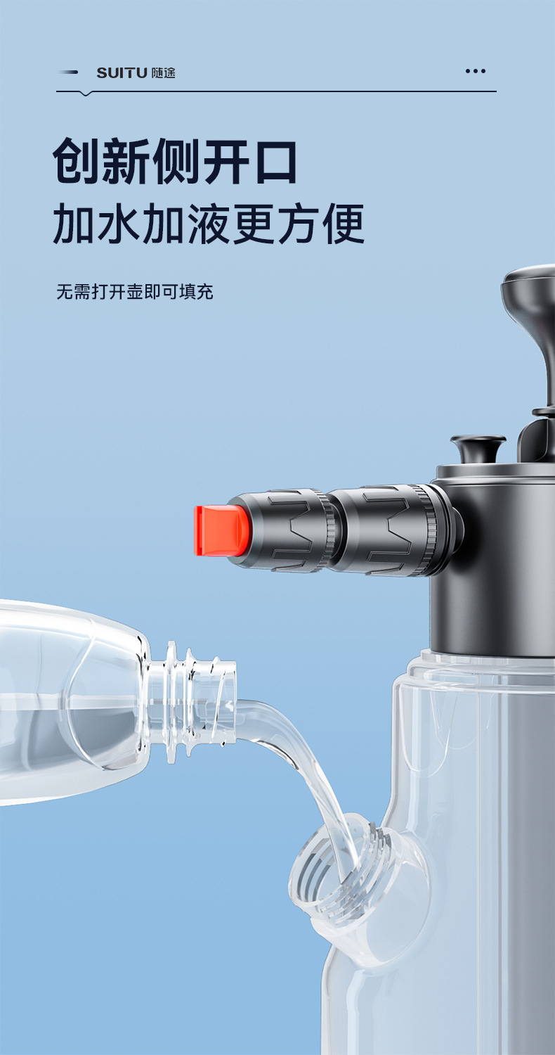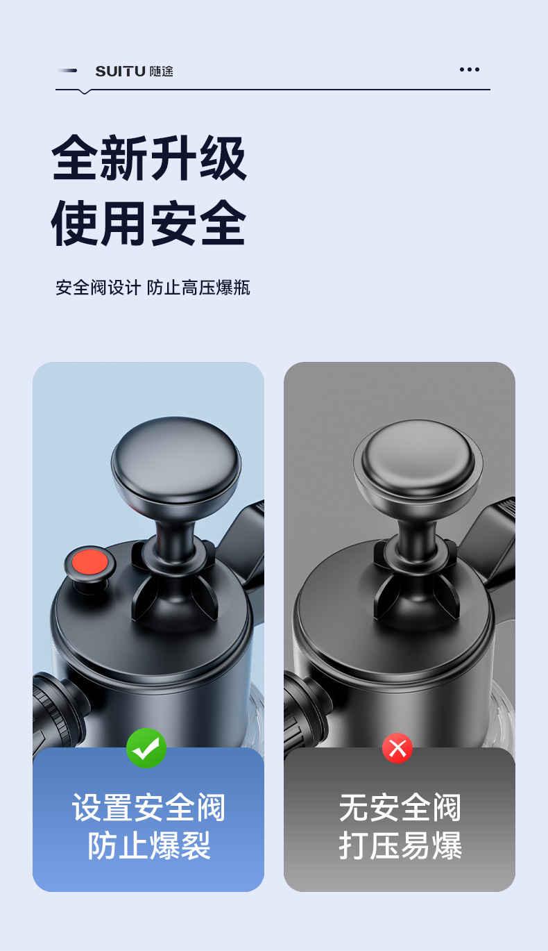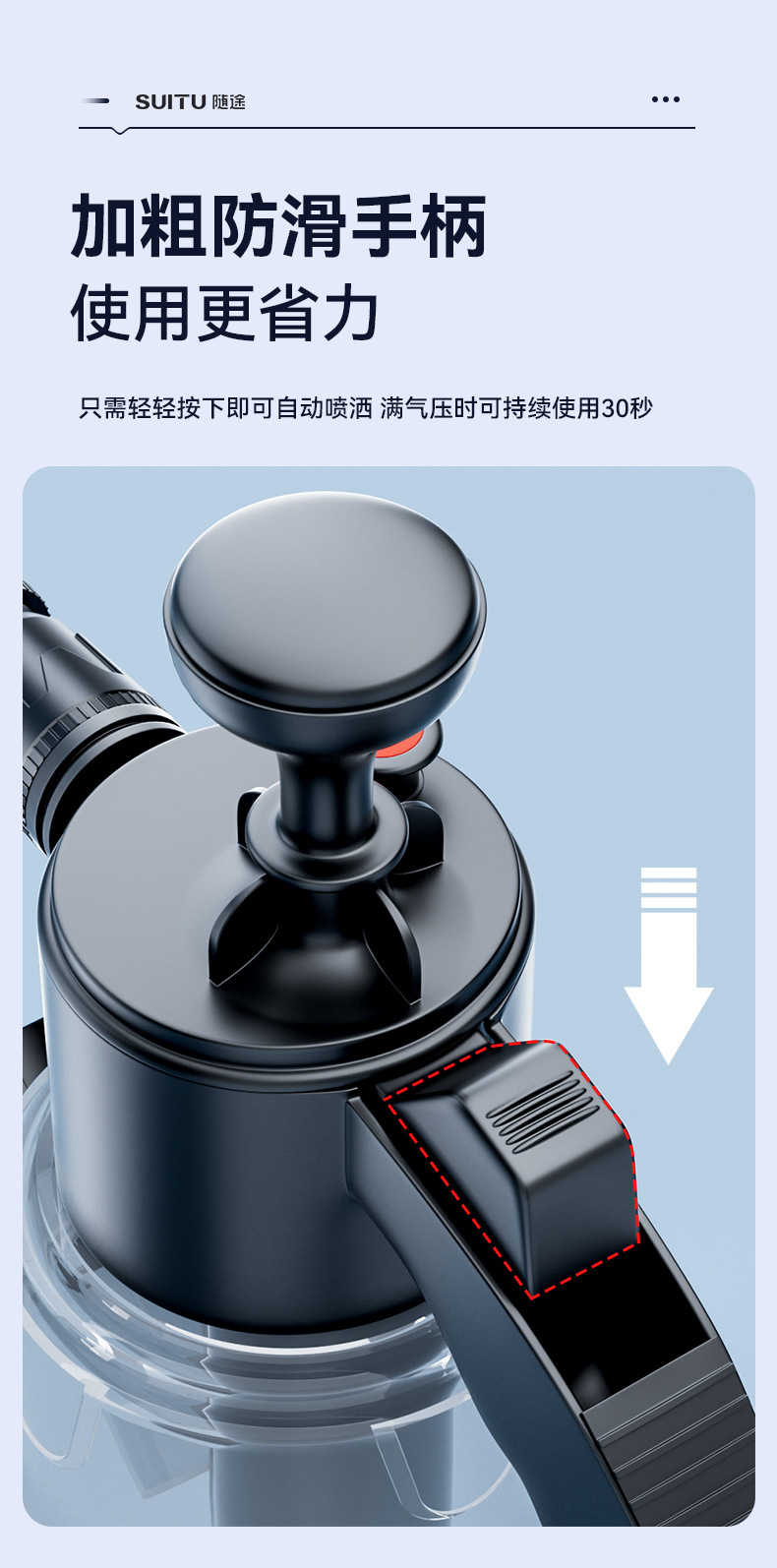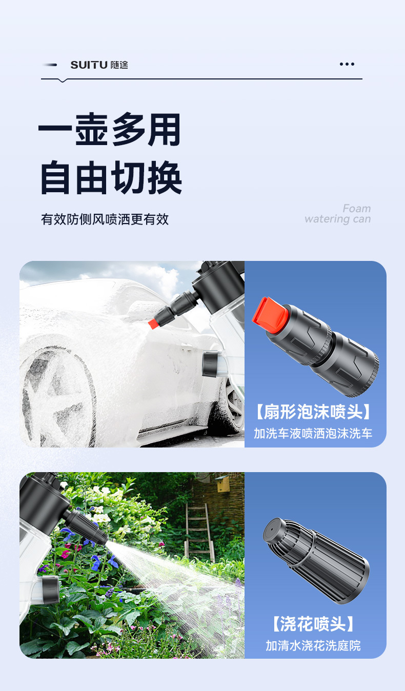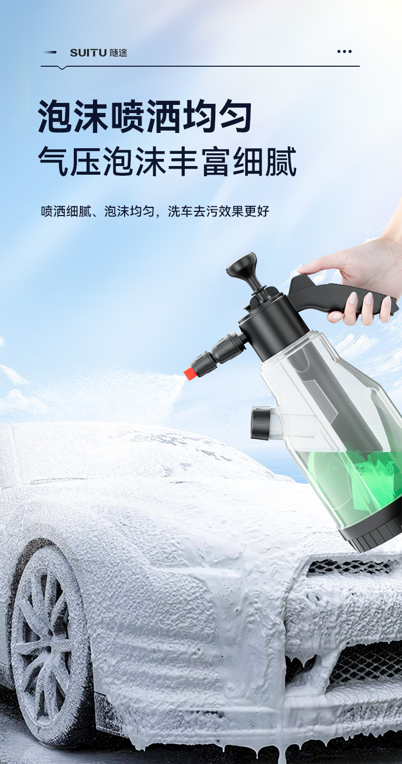 注:泡沫壶壶体有刻度线,加水不能超2L,洗车液和水比列1:50,气泡效果更佳。