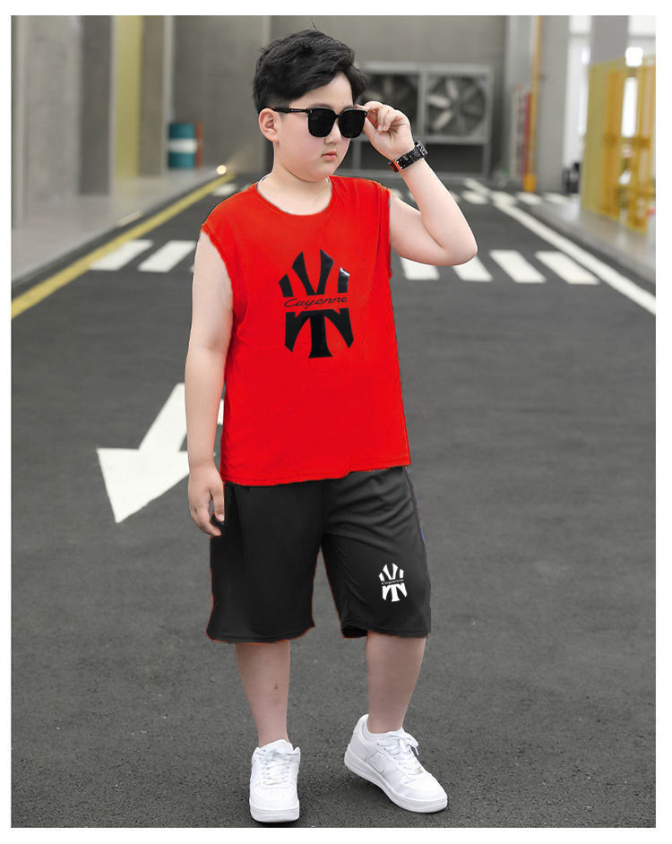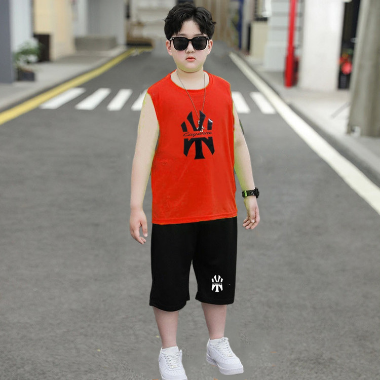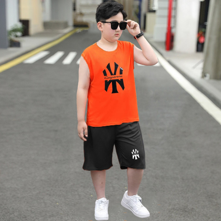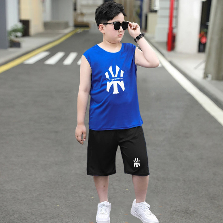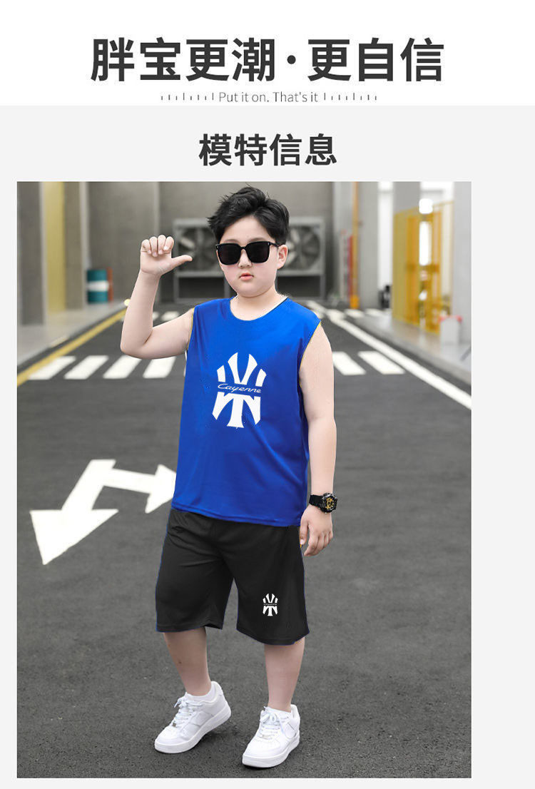 국경 간 아동복 뚱뚱한 소년 농구 세트 여름 세트 큰 아이들 느슨한 조끼 플러스 지방 플러스 빠른 건조 운동복