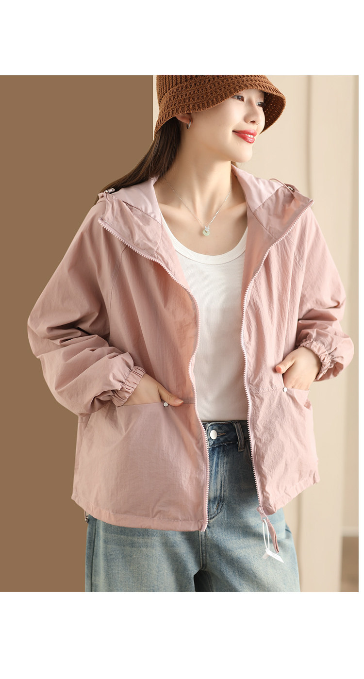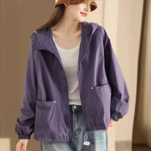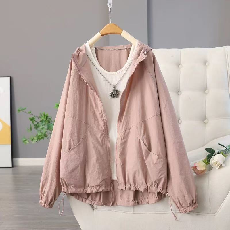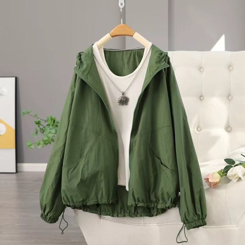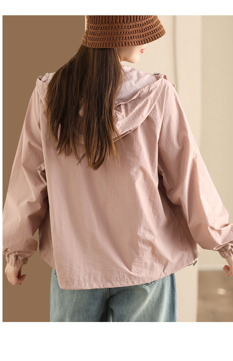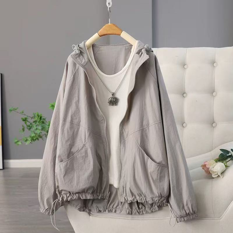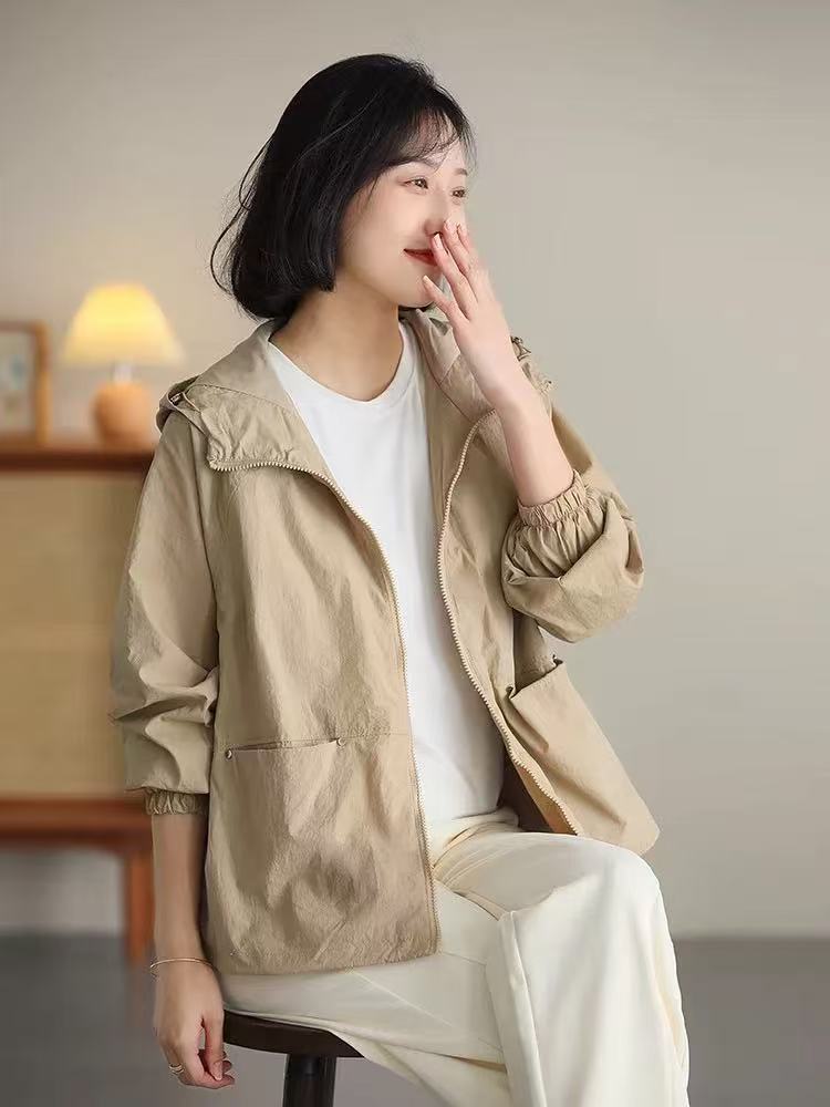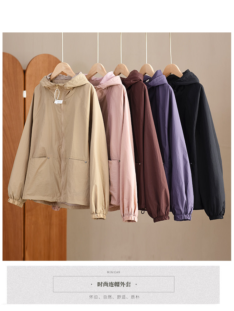 2024 년 봄 새로운 후드 코트 여자 느슨한 긴팔 카디건 캐주얼 올 매치 아우터 탑