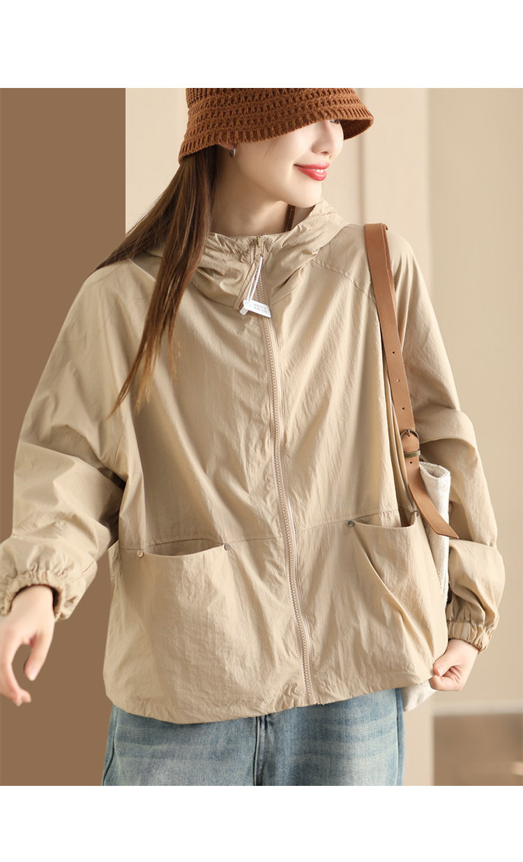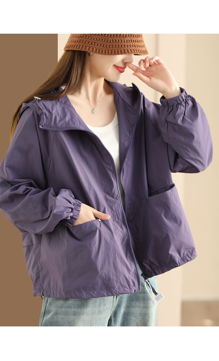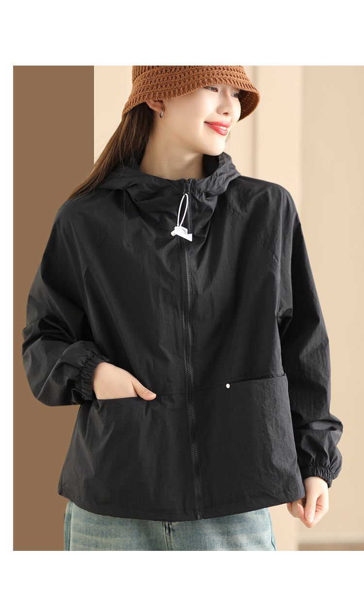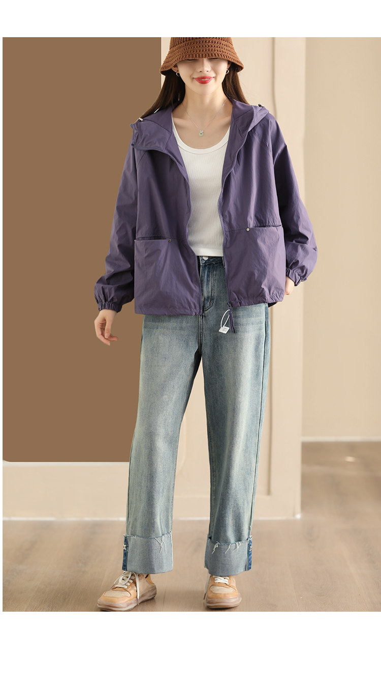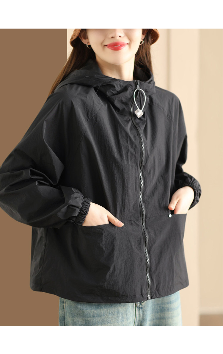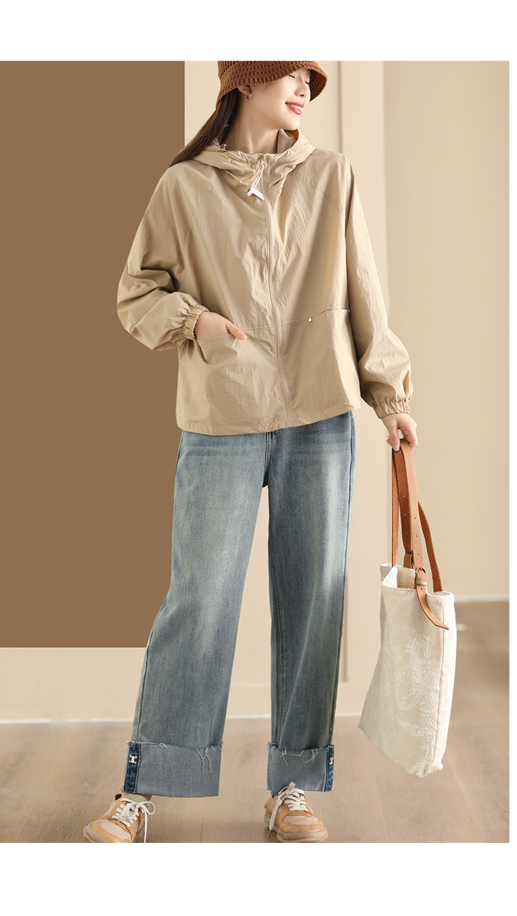 2024 년 봄 새로운 후드 코트 여자 느슨한 긴팔 카디건 캐주얼 올 매치 아우터 탑