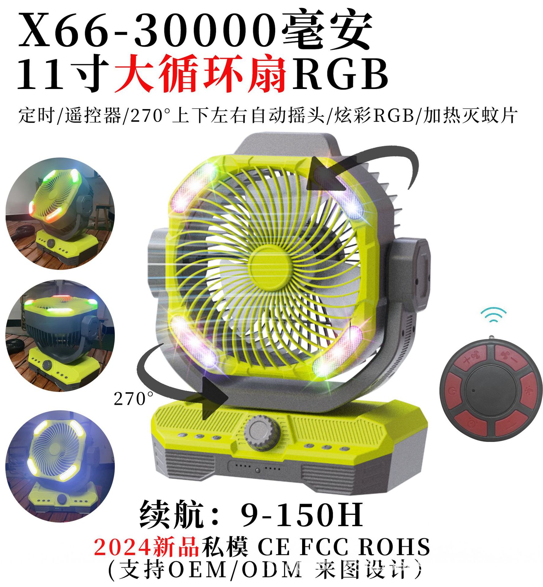 새로운 12 인치 초장 사이클 30,000 mA 360 도 회전 대형 사이클 팬 가정용 원격 제어 팬